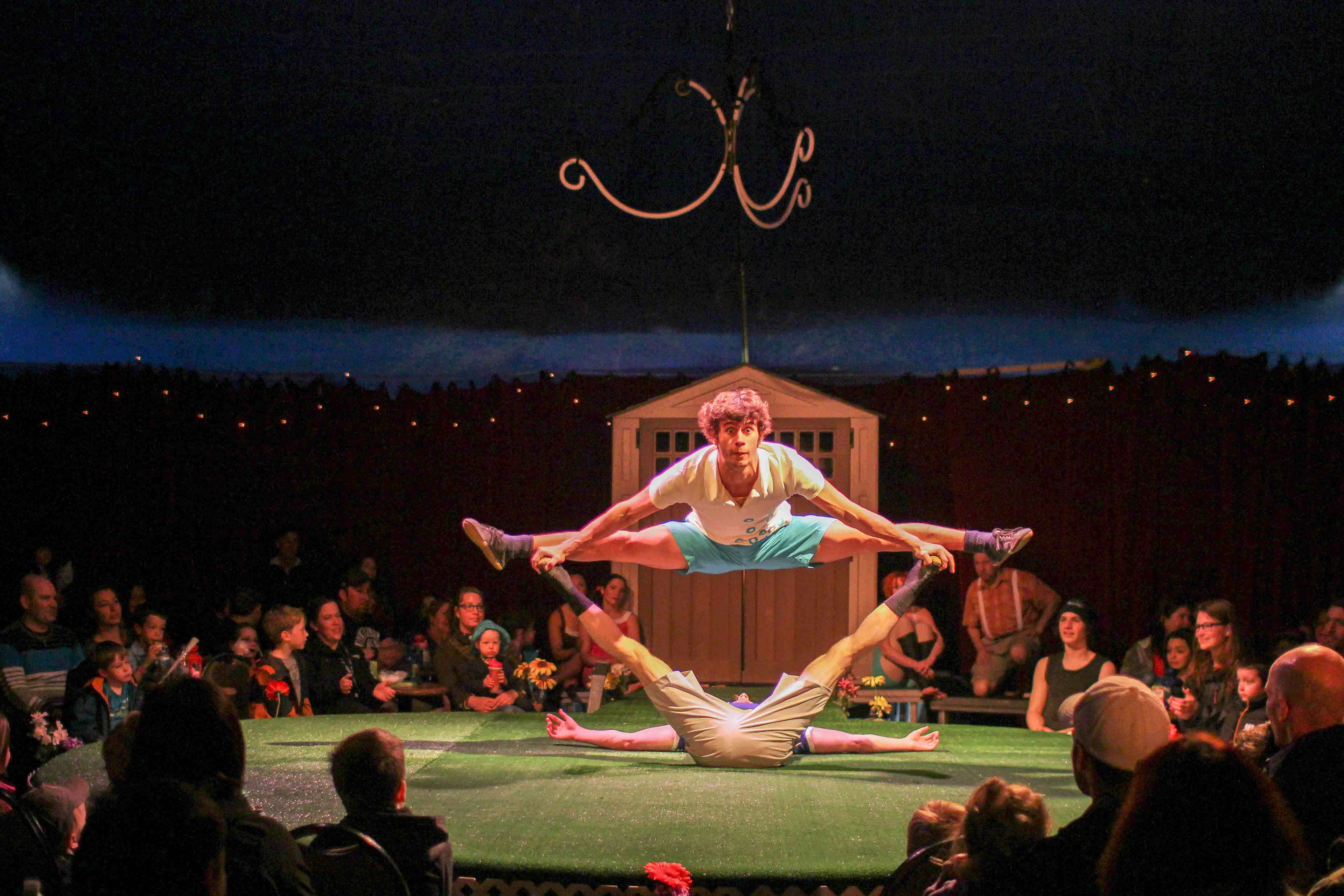 La tente de 200 places abritera une guerre de voisins, plus agiles les uns que les autres, qui enfileront les numéros d’équilibrisme et de voltige. Au lieu d’estrades habituellement utilisées dans les arènes de cirque, des tables de style cabaret ceintureront la scène ronde.