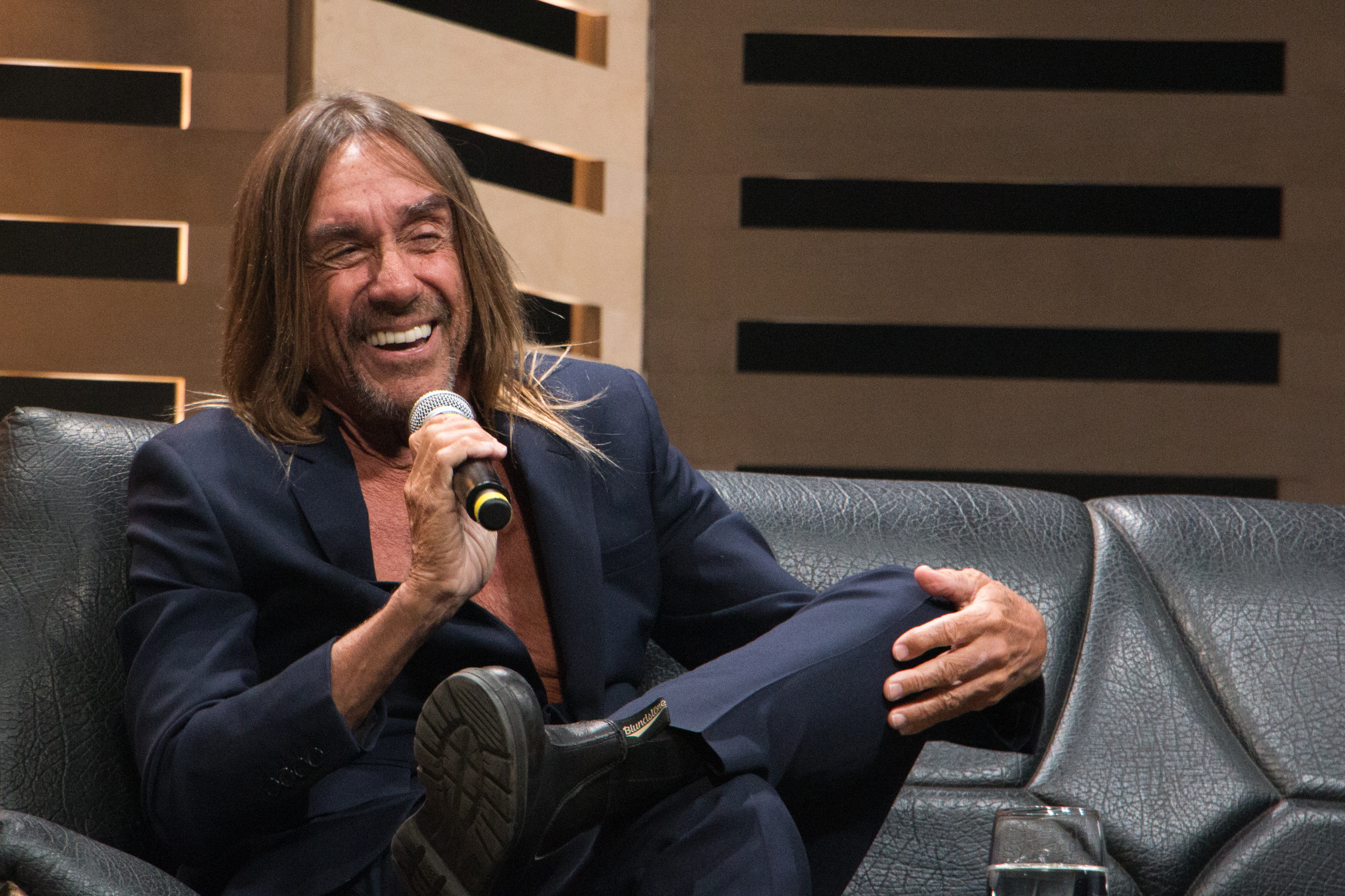 «Mais est-ce que ç’a déjà été difficile de concilier les personnalités d’Iggy et de Jim?» a insisté l’animateur. «Ça n’a strictement aucun rapport avec un truc psychologique merdique, a-t-il rétorqué, s’attirant des applaudissements. C’est qu’à l’époque, les gars dans le Michigan – où je suis né – étaient outrés quand ils entendaient un prénom pareil. Ça m’amusait bien.» Sourire. «Maintenant, ce n’est plus pareil. Tout le monde a un prénom bizarre.»
