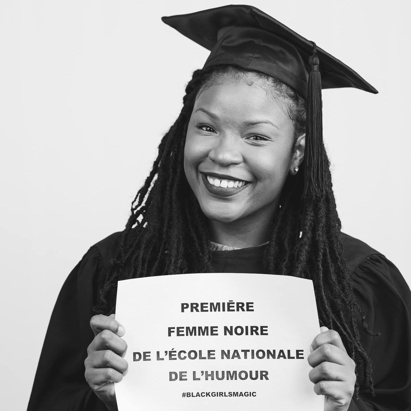 Mon parcours, c’est un conte de fées. J’ai terminé mes études [à Montréal], puis en 2014, j’ai décidé de quitter le Canada et de retourner en Haïti pour donner des cours de théâtre. L’École nationale de l’humour était de passage afin de recruter pour le spectacle HaHaHaïti, et ils ont décidé qu’ils me voulaient! Deux heures après le show, Louise Richer [la directrice de l’ÉNH] est venue me voir pour me dire [qu’on m’offrait] une bourse d’études pour le programme complet à l’ÉNH. Ça a été aussi brutal que ça! [Rires]