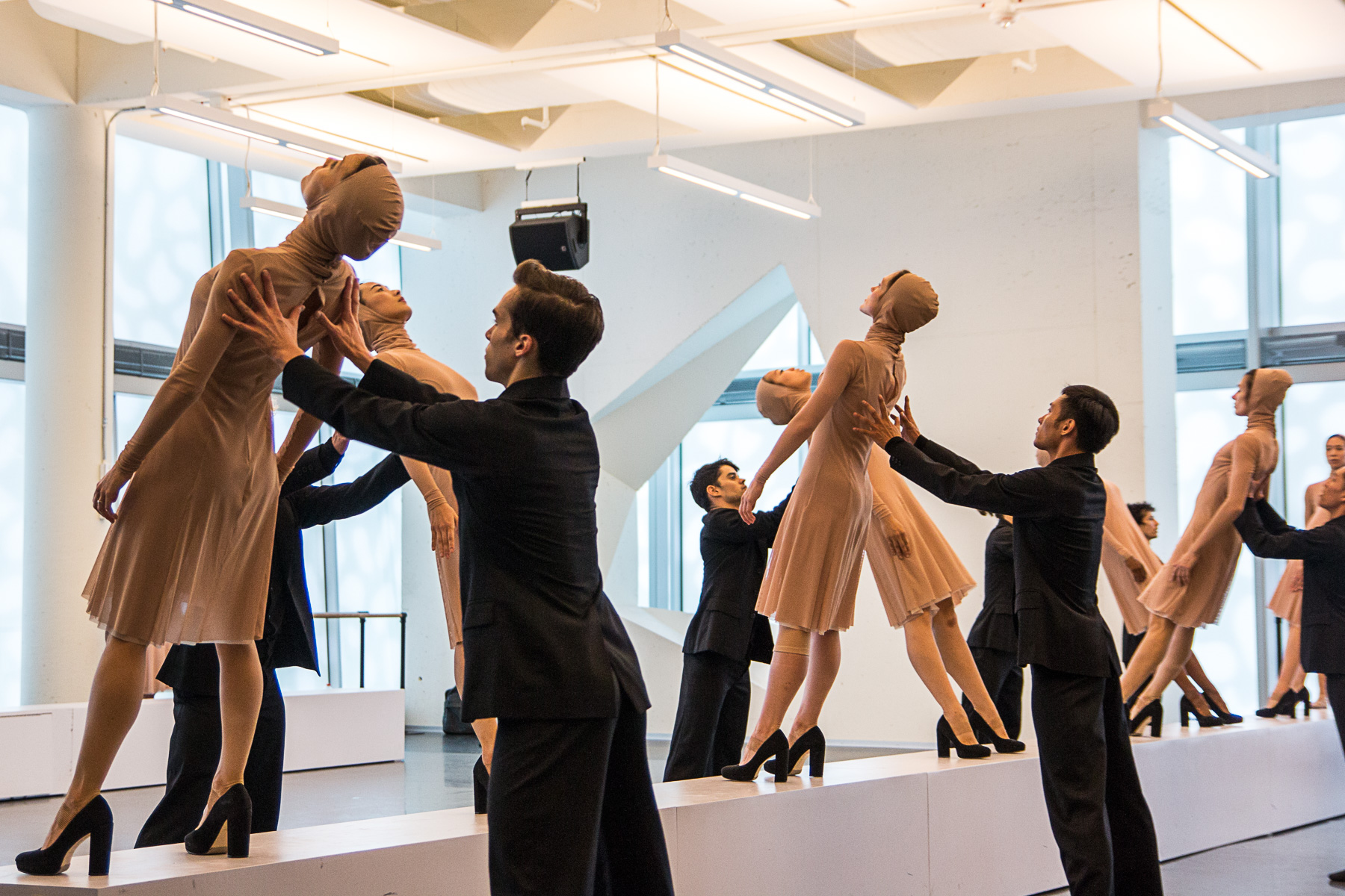 Sans oublier qu’il a souhaité mettre en évidence la polyvalence de la compagnie. «Qui danse moderne autant qu’elle danse sur pointes.» Et talons hauts. Ceux que les danseuses enfilent le temps de parader sur la passerelle façon défilé de mode, puis de se prêter à une course effrénée sur scène.