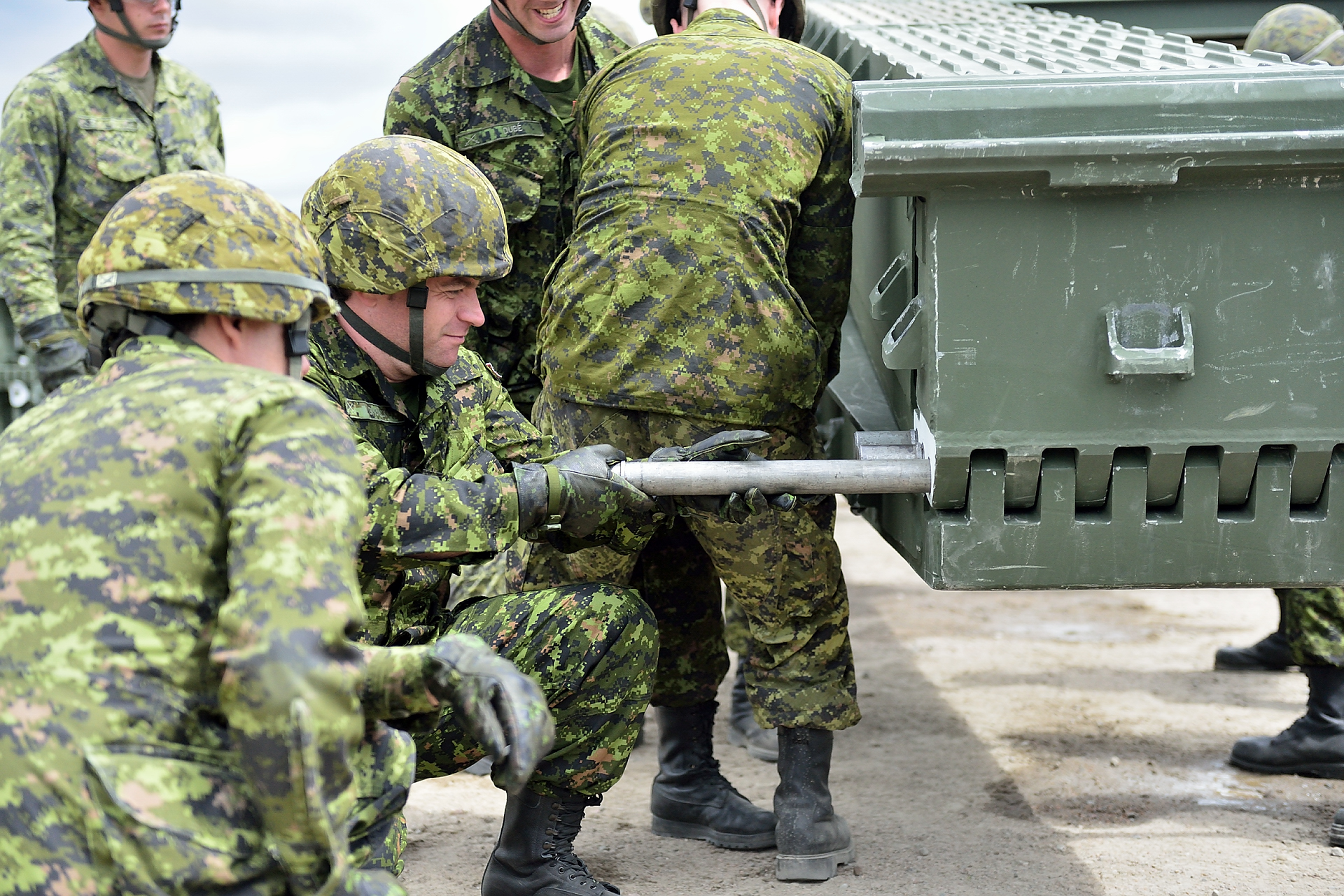 Les sapeurs de combat œuvrent au sein de la branche du génie militaire des Forces canadiennes. Leur rôle est d’ouvrir la voie aux troupes, notamment en forçant des obstacles, en éliminant des pièges, et en érigeant des ponts temporaires. Voir quelques hommes assembler un pont comme si c’était un jeu de Meccano, c’est assez impressionnant!