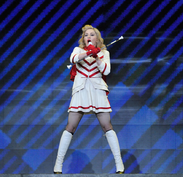 Des coups de feu, des chorégraphies impliquant des AK-47, une méchante tribu louche et non identifiée… Les actes se sont succédé dans une mise en scène époustouflante signée Michel Laprise, connu pour avoir travaillé avec le Cirque du Soleil, et ponctuée d’effets visuels impressionnants, créés par des projections, de la compagnie Moment Factory, québécoise également. La star a pris soin de glisser quelques classiques parmi ses nouveaux succès, comme Papa Don’t Preach, en medley avec Hung Up.