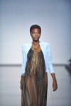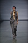 Pour cette collection estivale aux inspirations ethniques, elle a par ailleurs créé une belle surprise avec une pièce assez originale, un «one-pièce» intégral cachant le visage du mannequin la portant et fait d’une multitude de franges dorées superposées. D’ailleurs, cette création risque fort d’être une pièce importante de cette 23e Semaine de mode.