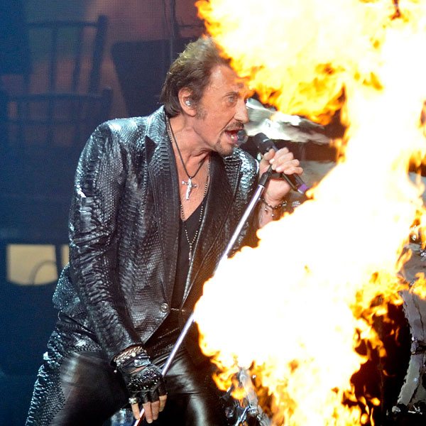 Vêtu de sa traditionnelle tenue de rockeur, à savoir un pantalon de cuir, un veston noir et un gant noir scintillant, Johnny a donné le ton avec Allumer Le feu, interprétée, comme il se doit, dans un décor de flammes.