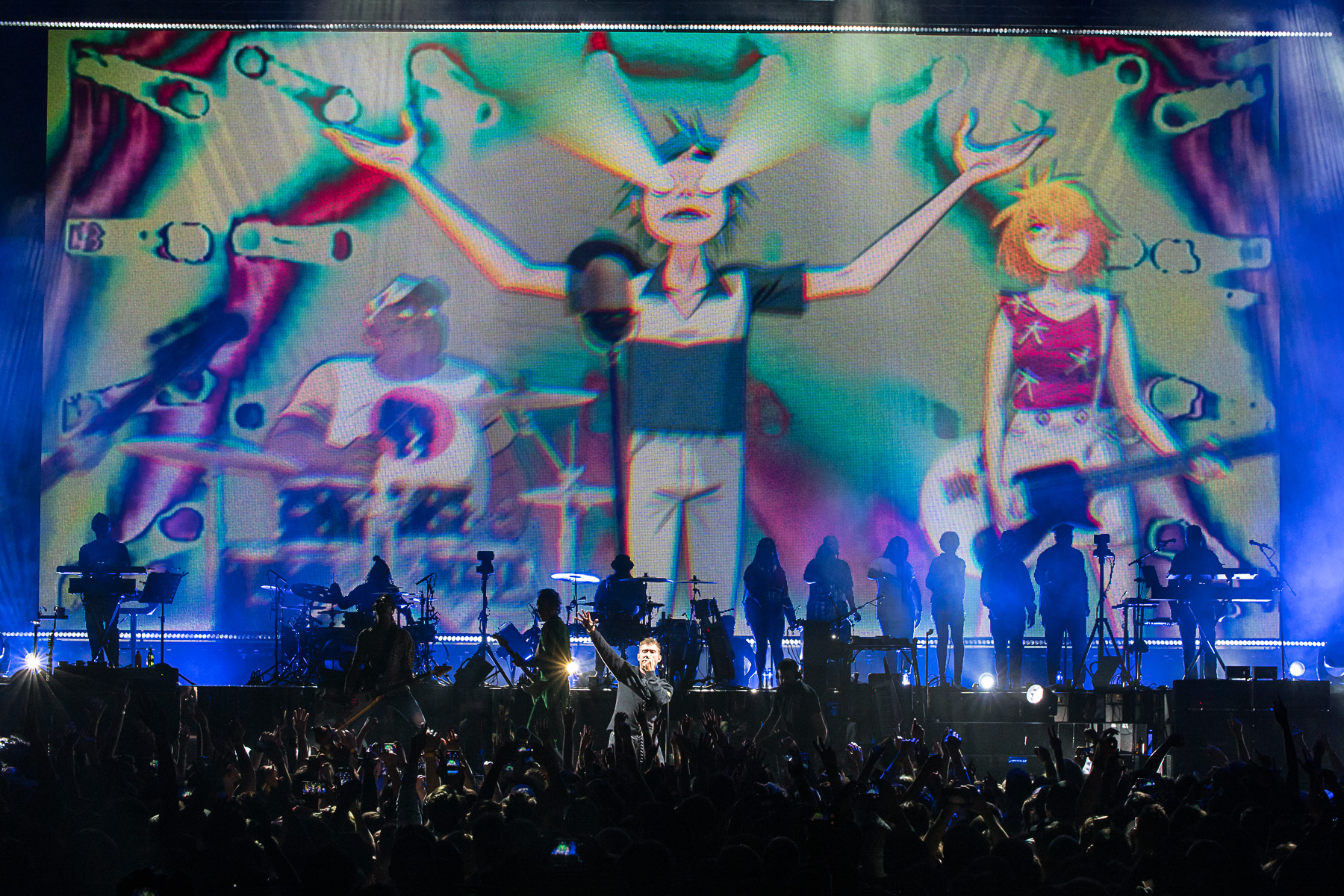 Gorillaz a ensuite suscité la frénésie avec un tour du chapeau de mégaclassiques, enchaînant Stylo, Dirty Harry (avec Bootie Brown et son couplet de rap) et Feel Good Inc (encore avec De La Soul) pour couronner le spectacle.