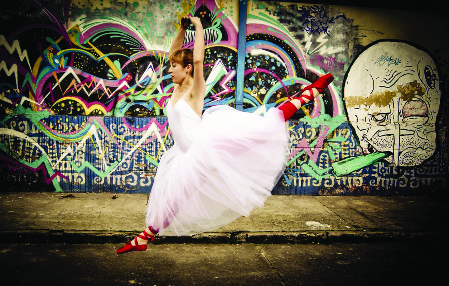 Gabo Gomez a passé un après-midi à photographier son amie ballerine en face d’un mur de graffitis, à Bogota, en Colombie.