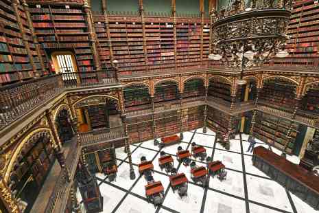 De l’extérieur, cet édifice majestueux et immaculé ressemble aux autres bâtiments coloniaux du centre de Rio de Janeiro. Mais en entrant dans le Cabinet royal portugais de lecture, bibliothèque étonnante aux ornements spectaculaires, on a l’impression de se retrouver plongé dans l’univers de Harry Potter.