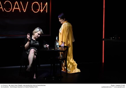 Dans une bourgade du nord de l’Ontario, les couteaux volent bas, alors que le motel familial La Queen’s est sur le point d’être liquidé. Le corps de la propriétaire n’est pas encore froid que ses filles se disputent déjà leur héritage. Mensonges, trahisons et vieilles rancunes sont exhumés à une vitesse haletante au fil de la transaction. Dans la peau de sœurs rivales, Marie-Thérèse Fortin et Dominique Quesnel brillent dans cette nouvelle pièce de Jean Marc Dalpé, qui pose un regard franc sur la transmission, l’identité et le pouvoir destructeur du testament. Le conflit intérieur des personnages pose un dilemme qui nous habite bien après la tombée du rideau : faut-il préserver ou dépasser nos origines? Charlotte Mercille