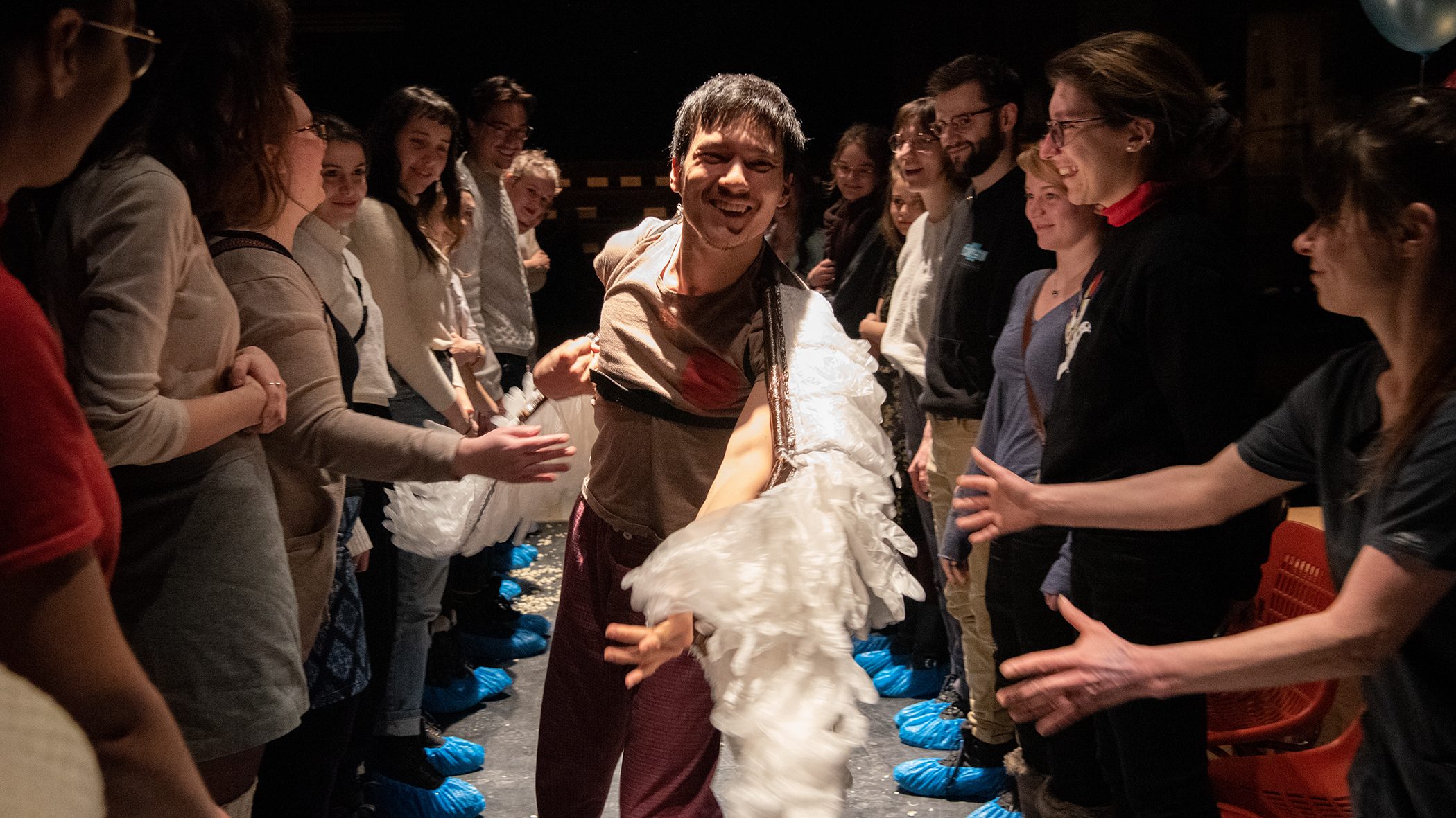 Home Dépôt, c’est d’abord une salle d’attente, où comme les milliers de Québécois vivant dans un CHLSD, on attend qu’on s’occupe de nous. On ne les appelle pas des patients pour rien… Chaussons aux pieds, on déambule ensuite dans le musée, qui rassemble les petits morceaux d’existence laissés par les résidents de ces centres d’hébergement. Puis, place au spectacle à proprement dit, né de la rencontre entre des auteurs et des patients de CHSLD. Oscillant entre le rire, les pleurs et le malaise, Home Dépôt nous prend au cœur en célébrant la vie passée de ceux et celles qui habitent ces lieux qui ressemblent trop souvent à des mouroirs institutionnalisés. Gros coup de cœur pour la danseuse Claudia Chan Tak, qui vient ajouter une couche supplémentaire de poésie à un spectacle fort chargé en émotions. Benoit Valois-Nadeau