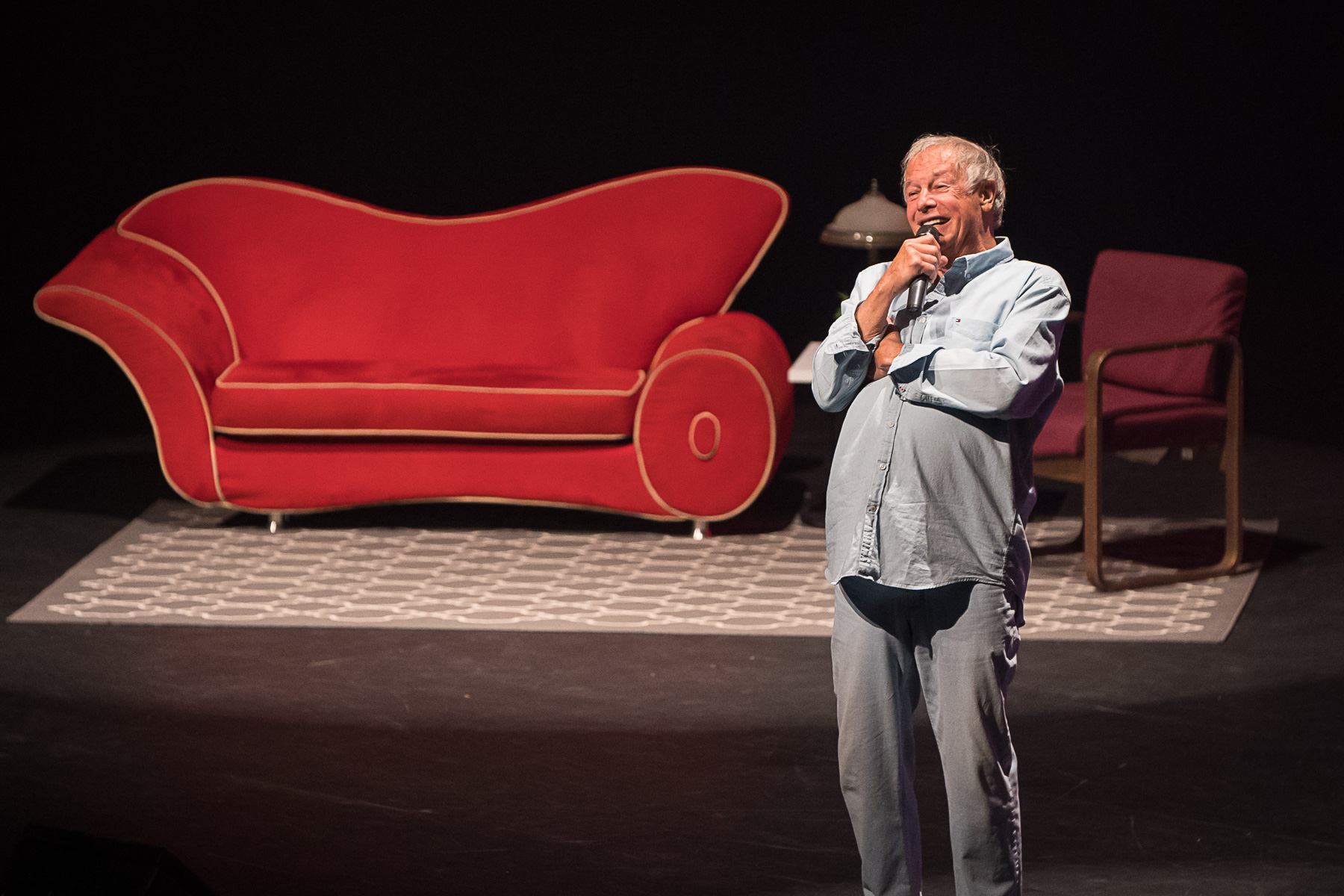 Bien servi par sa longue expérience d’animateur, l’humoriste d’un soir semblait tout à fait à son aise sur la grande scène du Théâtre Jean-Duceppe.