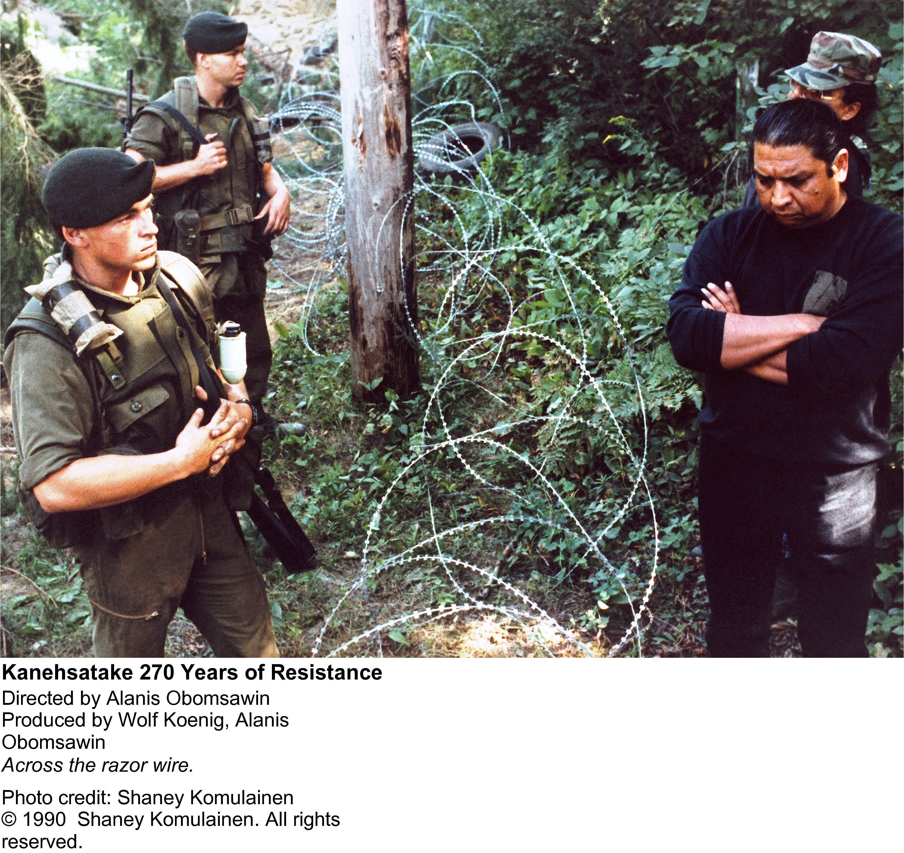 Comme on le voit dans le film, plus la crise avançait, plus l’étau se resserrait autour des Mohawks. Ils ont finalement été confinés dans une zone extrêmement restreinte, entourée de milliers de soldats canadiens armés. Alanis Obomsawin a choisi de demeurer avec les résistants jusqu’à la fin, ou presque, contre l’avis de son employeur.