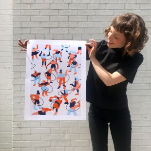 C.G: Montréal est une ville agréable à vivre. J’aime son rythme calme. Je peux me rendre à pied de mon appartement à mon atelier, faire pousser des tomates sur mon balcon et promener mon chien dans les parcs et ruelles. Ma famille et mes amis sont ici; c’est également important pour moi. Et puis les gens sont gentils, souriants et de bonne humeur, ce qui inspire beaucoup mon travail, car je suis entourée de personnages aussi joyeux que ceux que je dessine!