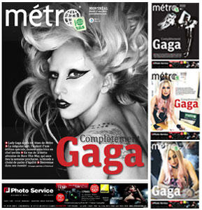 Pour marquer ce numéro spécial dédié à Lady Gaga, Métro publie aujourd’hui quatre unes différentes. Regardez autour de vous, puisque vous n’avez peut-être pas la même édition que votre voisin!