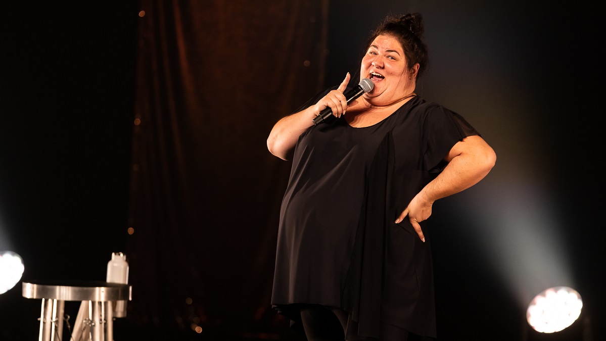 L’humoriste s’essaie aussi à la critique sociale avec Grâce. Même si elle est plus vulgaire par moment, sa sensibilité à différentes causes est toujours en filigrane de ses propos. Elle traite aussi plus directement de sujets chauds comme les inconduites sexuelles et la grossophobie avec une tournure rafraîchissante.