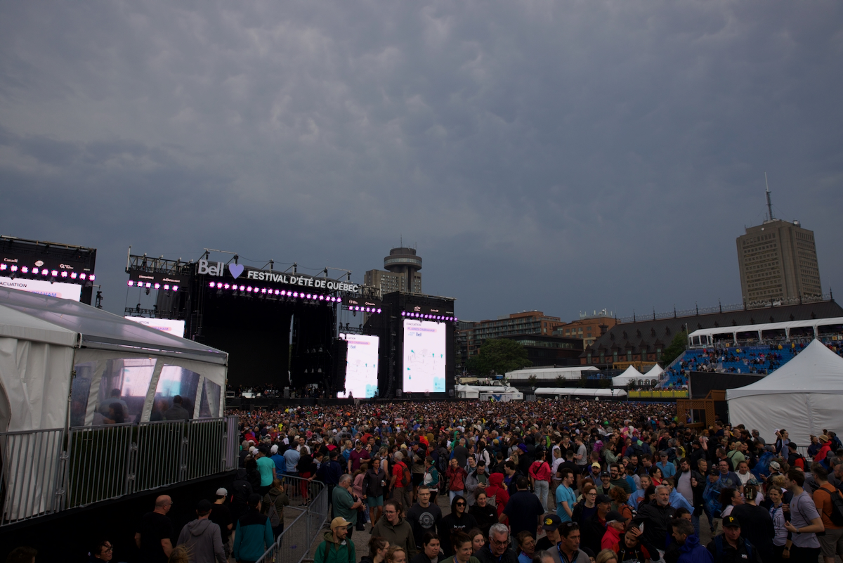 Comme une importante cellule orageuse était attendue sur Québec en soirée, l’organisation de l’événement avait d’abord annoncé sur l’heure du souper qu’elle remaniait son horaire dans le but de présenter les spectacles de ses têtes d’affiche.
