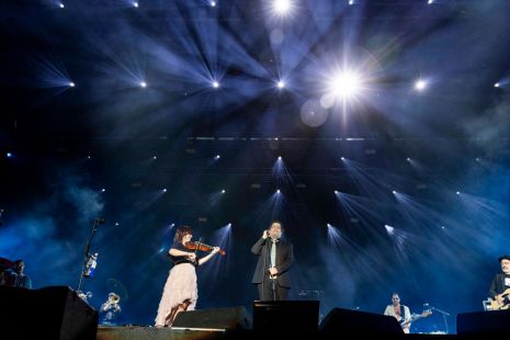 Ils étaient des dizaines de milliers de spectateurs. Probablement plus que jamais pour une soirée mettant en vedette des artistes québécois au Festival d’été de Québec. Sur le coup de 21h45, les musiciens sont montés sur scène sous les applaudissements de la foule. Violon en main, Marie-Annick Lépine a joué les premières notes de la soirée. Puis, Karl Tremblay a rejoint ses collègues et les décibels en provenance du public ont immédiatement monté d’un cran.