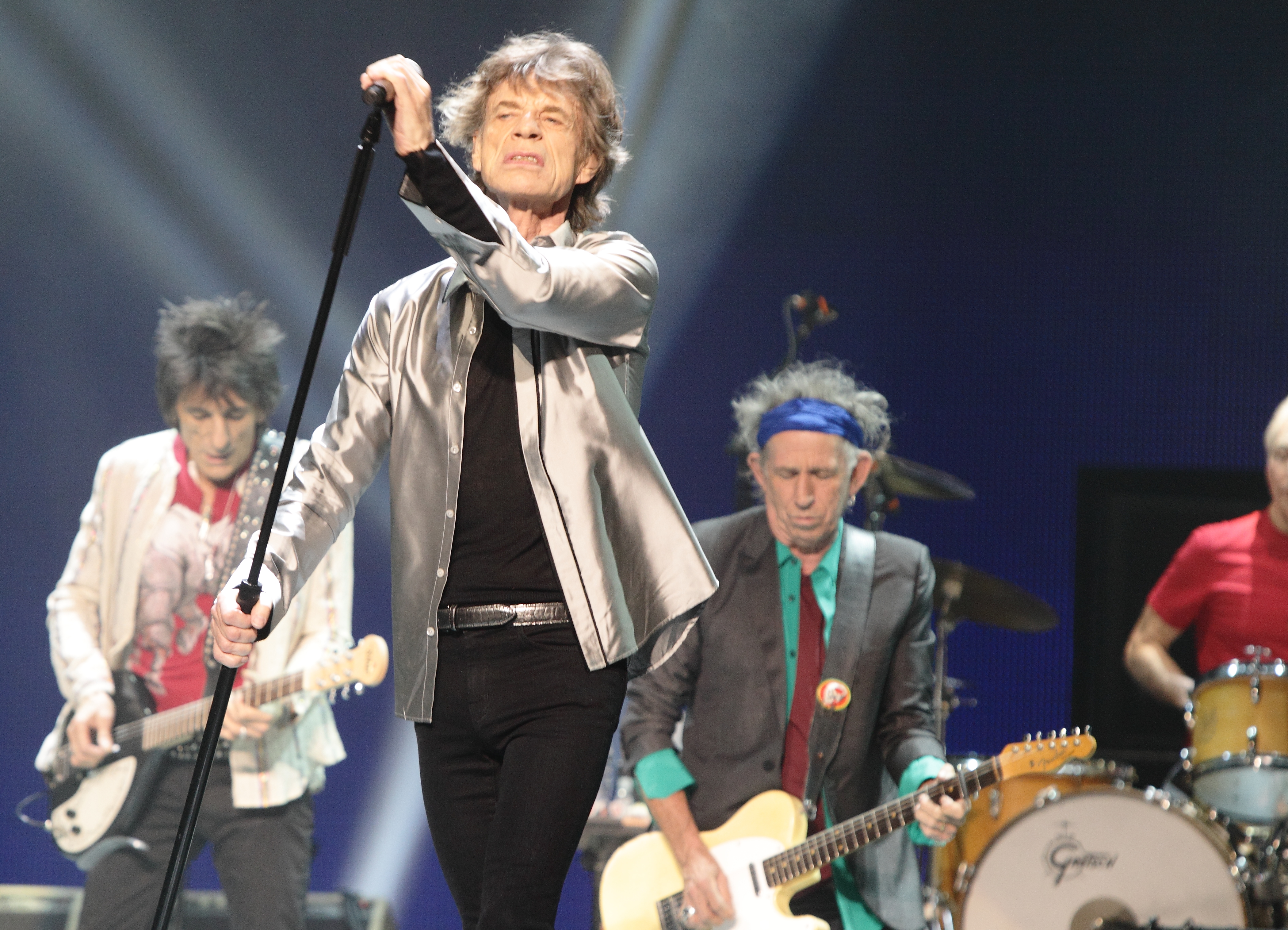 Puis, le noir s’est fait. Mais contrairement à ce qu’on avait vu lors du passage de la bande à Brooklyn en décembre dernier, les percussionnistes qui sortaient des quatre coins de la salle avant que les Britanniques eux-mêmes arrivent sur scène avaient été remplacés par des bruits de tambours pré-enregistrés. L’impact était visuellement moins frappant, mais l’ambiance était bonne. Puis on a vu le t-shirt rouge de Charlie apparaître dans le fond du décor, ih!, et les musiciens ont fait leur entrée. Sans plus attendre, Mick a agrippé le micro et engagé immédiatement le dialogue avec la foule : «Hey! Hey! You! You! Get off of my cloud!»
