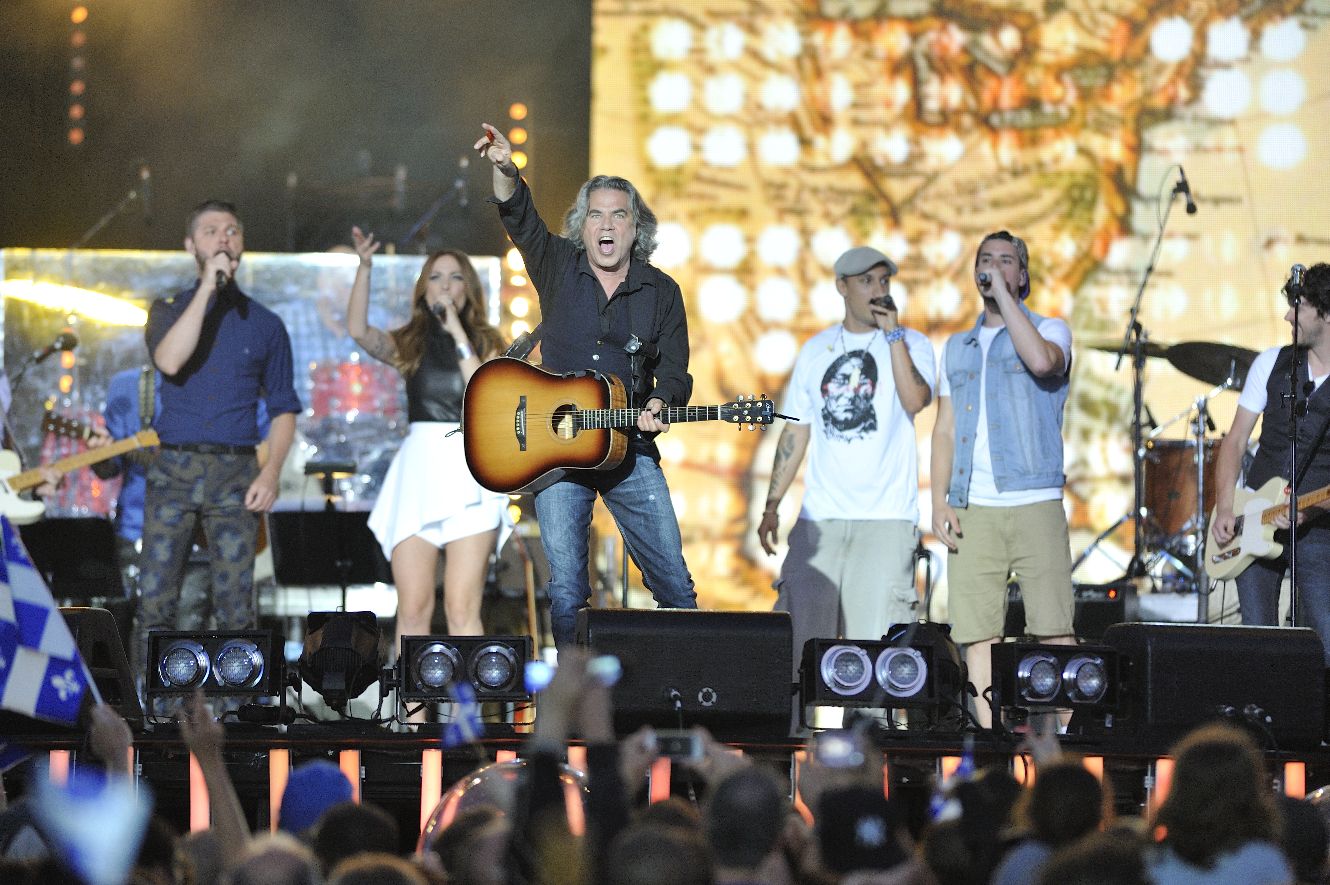 Guy A. Lepage a ouvert le Grand spectacle de la Saint-Jean au parc Maisonneuve avec deux formules. Une très alambiquée, puis une toute simple : «Salut les Québécois, bienvenue au party de la fête nationale du Québec à Montréal!»