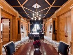 Cette résidence de 24 000 pieds carrés compte six chambres et six salles de bain, une salle de gym, une bibliothèque, une cave à vin en pierre avec une salle de dégustation, une salle à manger pouvant accueillir 18 personnes, une piscine creusée, un solarium, une salle de jeu et plus encore.
