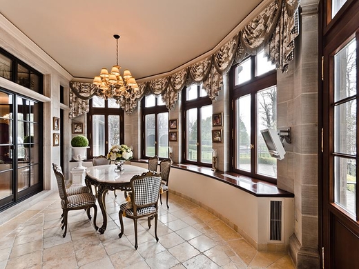 Cette résidence de 24 000 pieds carrés compte six chambres et six salles de bain, une salle de gym, une bibliothèque, une cave à vin en pierre avec une salle de dégustation, une salle à manger pouvant accueillir 18 personnes, une piscine creusée, un solarium, une salle de jeu et plus encore.