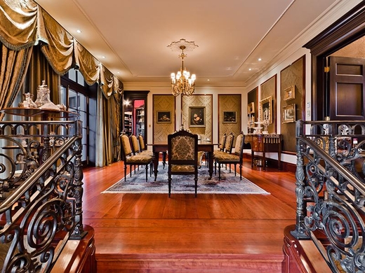 Cette résidence de 24 000 pieds carrés compte six chambres et six salles de bain, une salle de gym, une bibliothèque, une cave à vin en pierre avec une salle de dégustation, une salle à manger pouvant accueillir 18 personnes, une piscine creusée, un solarium, une salle de jeu et plus encore.