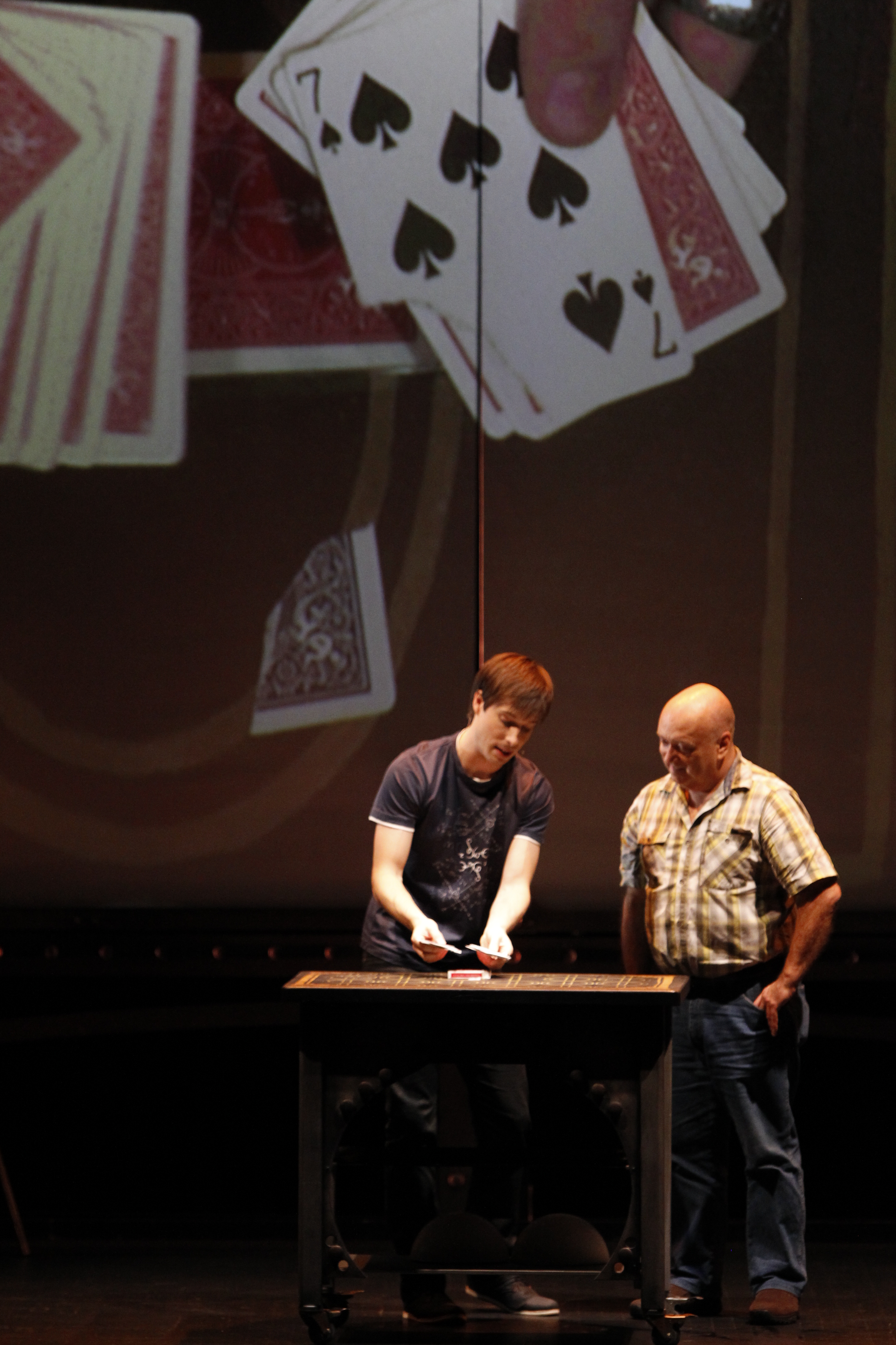 Du reste, les illusions proposées étant toutes inédites (sauf peut-être ce numéro de «carré magique» impliquant des additions de nombres, qui a provoqué en nous une forte impression de déjà-vu, jusqu’à ce qu’on se souvienne que Gary Kurtz avait fait le même dans son dernier spectacle), on en a été quittes pour plusieurs moments de surprise – ce qui n’est pas une mince affaire, maintenant que tout a pratiquement déjà été vu.
