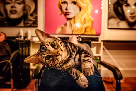 Non. Les deux ou trois clientes qui sont allergiques aux chats prennent un antihistaminique avant de venir. Sinon, la plupart des clients apprécient l’effet zoothérapeutique liée au fait de pouvoir caresser un chat en se faisant coiffer. Moov, notre petit Bengale silver marble, est le chat le plus doux sur terre. À Londres, à Paris et à Tokyo, les gens ont compris ça : il y a plein de cafés et de salons de thé où les chats se promènent en liberté.