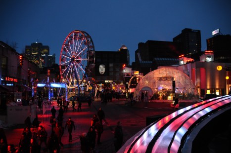Véritable quartier général de Montréal en lumière, la Place des festivals a été transformée en terrain de jeu hivernal, où se côtoient une grande roue, une longue glissade illuminée, plusieurs scènes et de nombreuses activités interactives mettant en vedette la créativité d’artistes d’ici.