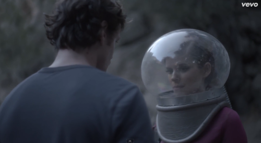 Le clip qui accompagne ce premier extrait de l’album insiste sur l’aspect de fausse légèreté que suggère la musique: on y flotte, presque en apesanteur, mais tout du long, on appréhende la chute. On découvre d’abord un homme (joué par Anton Yelchin, le Chekhov des nouveaux films de Star Trek) qui s’affale sur son divan et s’endort en zappant devant son téléviseur. En rêve, il atterrit sur une planète mystérieuse où il découvre une charmante astronaute incarnée par l’irrésistible Kate Mara (la Zoe de la série House of Cards). Leur idylle intergalactique est de courte durée puisque notre homme est transporté dans un vaisseau (une espèce de sphère géodésique qui rappelle la pochette du premier album de Broken Bells) où il est accueilli par Mercer et Burton, qui le font pénétrer dans ce qui a tout l’air d’une discothèque.