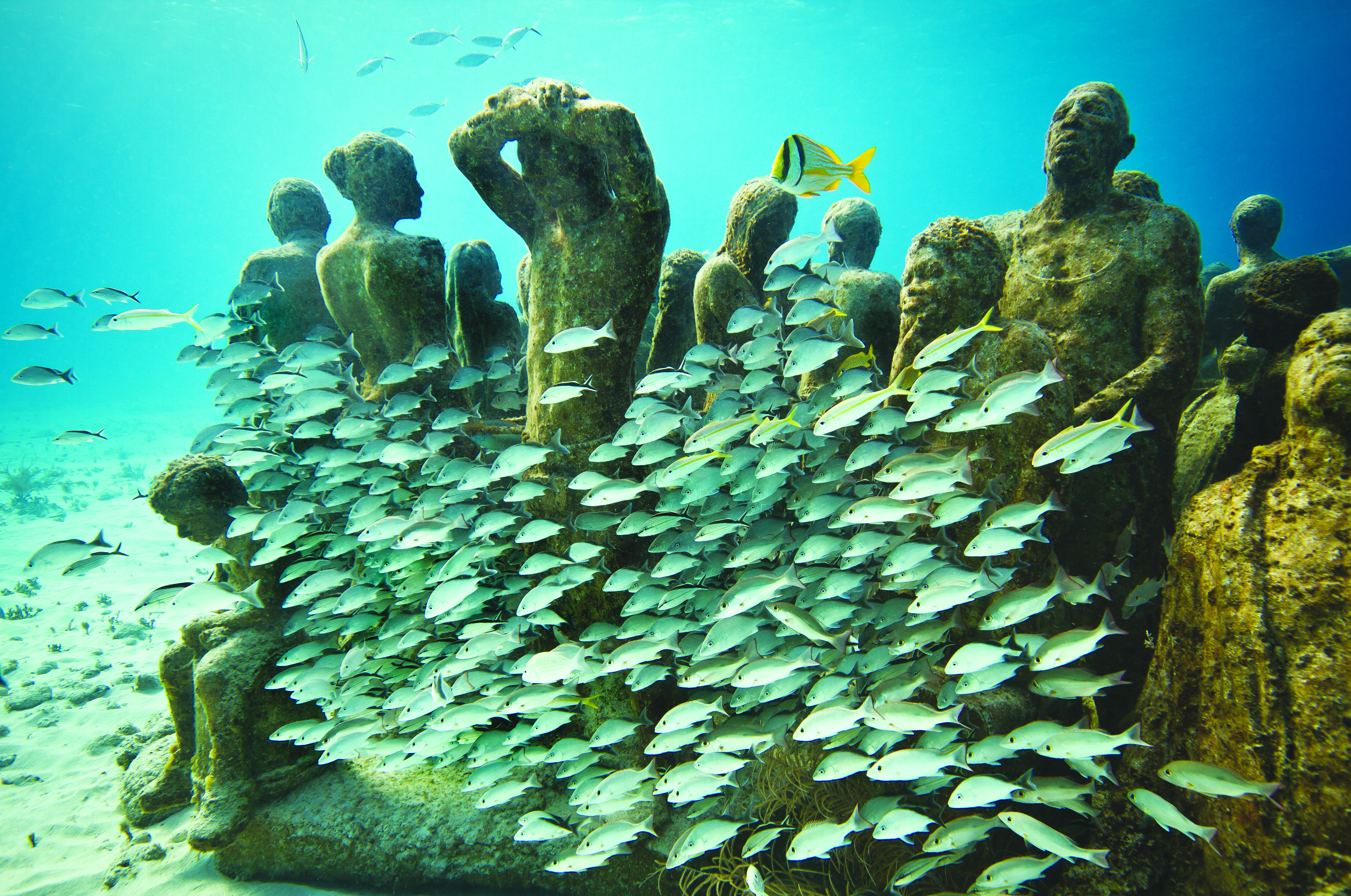 Au cours des cinq dernières années, le sculpteur britannique Jason deCaires Taylor a transformé une partie du littoral du Mexique et de la Grenade en une galerie d’art sous-marine. Taylor, 39 ans, a produit des statues grandeur nature, qu’il a submergées sous 9m d’eau. Son travail figure dans le nouvel ouvrage The Underwater Museum, publié par Chronicle Books.