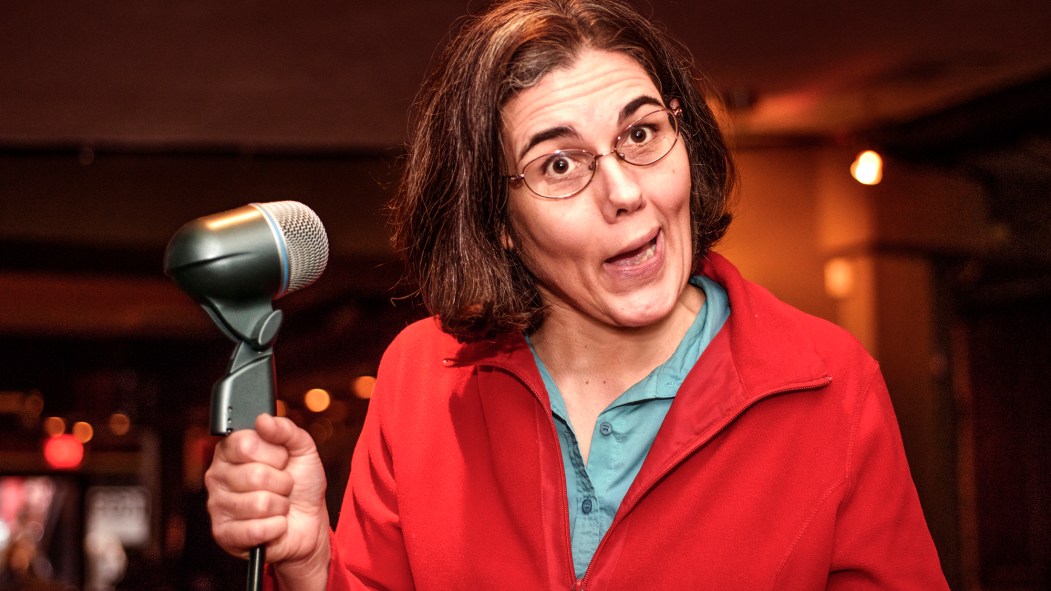 À quatre ans, j’ai eu un accident d’auto qui a été tellement fort que mes souliers ont revolé! Depuis, j’ai une paralysie cérébrale. J’ai une élocution lente et des problèmes de dextérité et d’équilibre. C’est pour ça que, sur scène, je ne tiens pas mon micro: je suis trop nerveuse, je pourrais l’échapper! Par contre, j’ai développé une autre compétence: vu que je ne parle pas vite, j’ai appris à parler fort, donc les gens me comprennent!