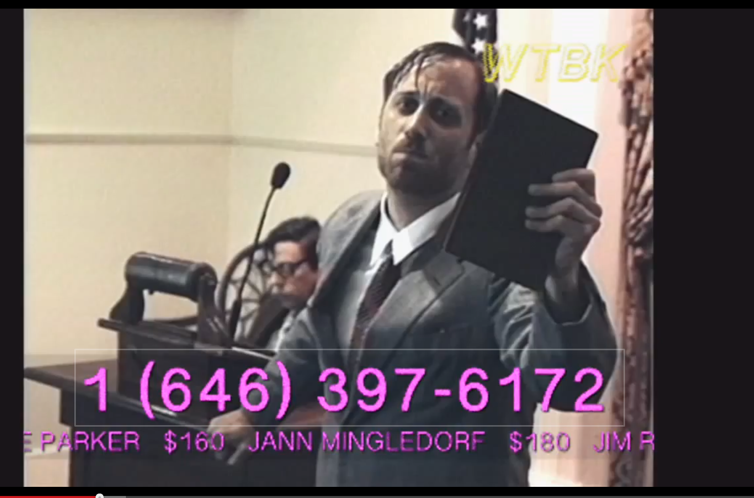 L’image, délavée et granuleuse, vient d’une émission religieuse diffusée sur une chaîne de télé fictive (WTBK) et se fond à merveille dans les archives des années 1980 qui nous montrent les fidèles se convulsant sous l’effet du Saint Esprit.