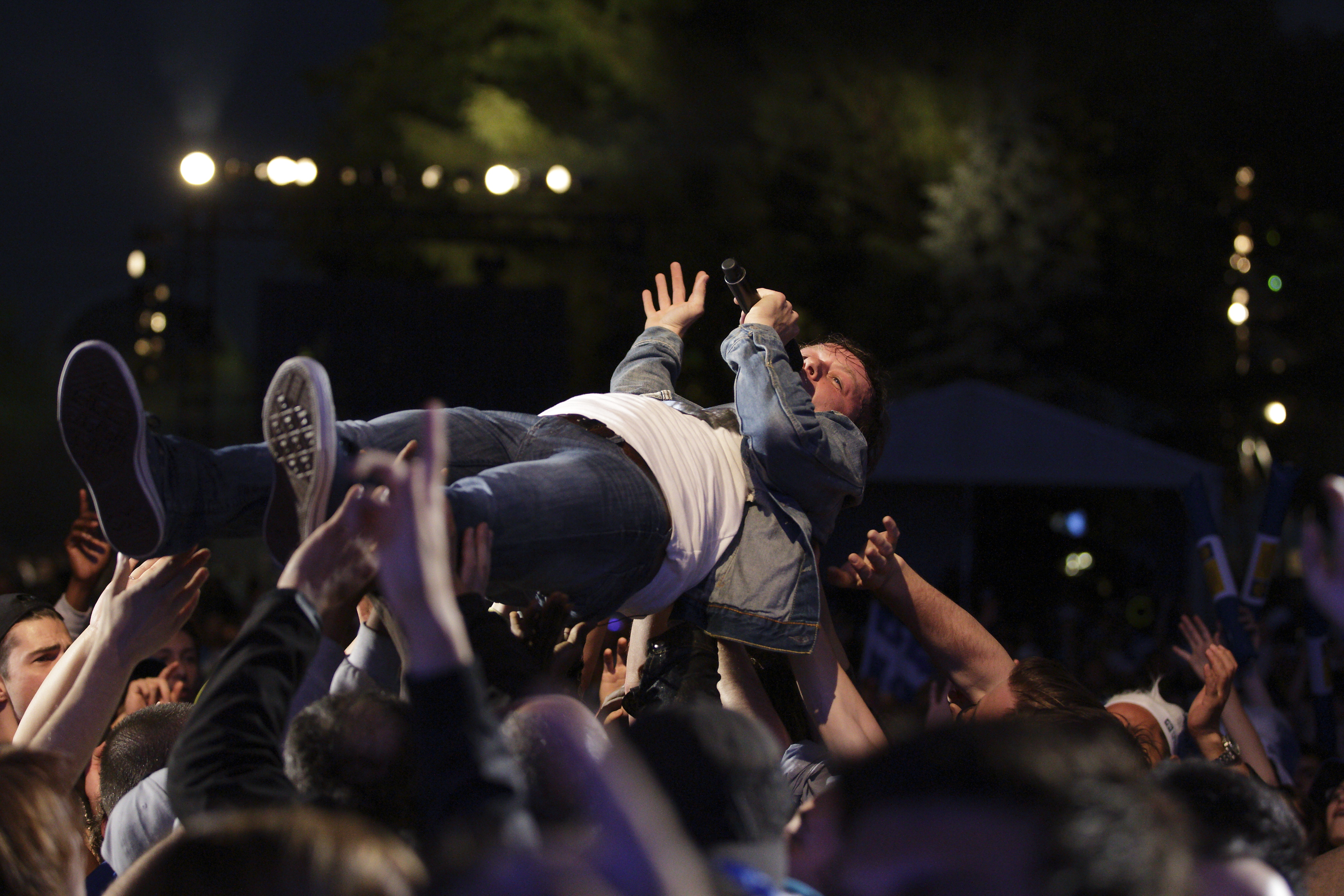 Des moments forts, il y en a eu plusieurs au cours d’une soirée qui n’a pas connu de temps mort. Pendant la dansante et vigoureuse Ave Mucho de Misteur Valaire, ça se déchaînait sur scène. Daniel Boucher en a même profité pour faire un peu de body surfing, qui a duré un bon moment. Pendant Je voudrais voir la mer, Michel Rivard s’est avancé dans un bateau de papier géant, sur lequel étaient écrites les paroles de la chanson. La pluie a alors décidé de se mettre de la partie. On aurait voulu créer un tel moment que cela aurait été impossible. Les mots du poète Gaston Miron sont aussi venus faire un tour grâce aux deux Hommes rapaillés de la soirée, Michel Rivard et Pierre Flynn. Même un Yvon Deschamps de 1975 est apparu en images d’archives, dans un remix réalisé par Daniel Boucher.