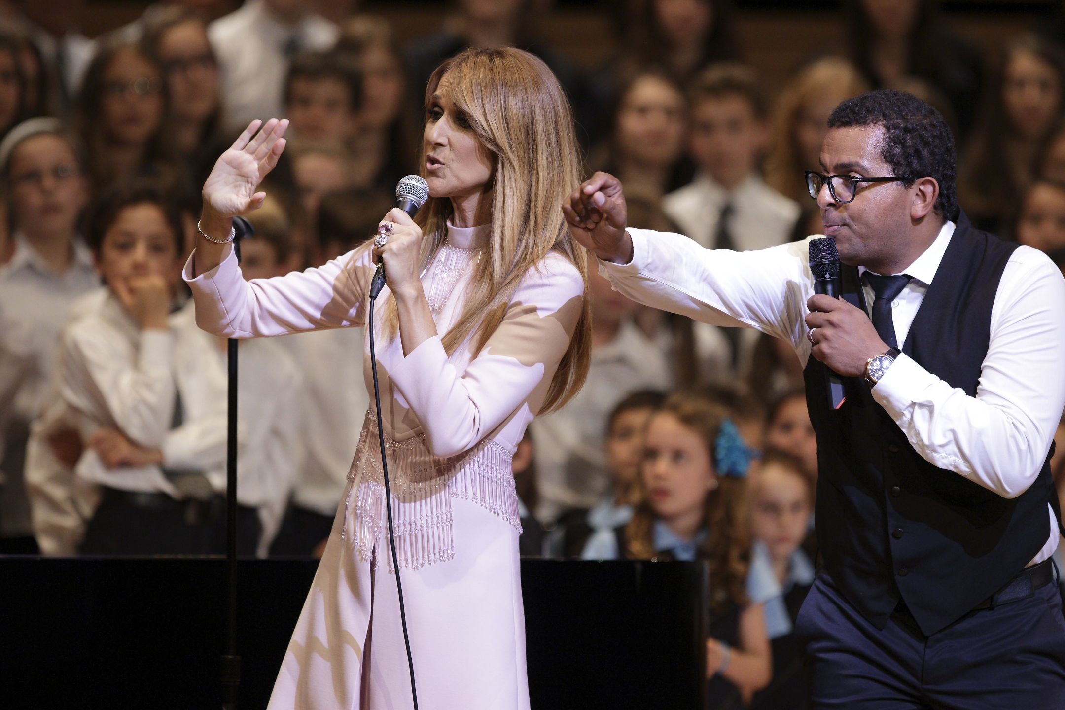 Céline Dion, qui était de passage pour quelques jours au Québec, a interprété sur scène «S’il suffisait d’aimer», accompagnée des deux chorales gagnantes d’un concours organisé pour l’hôpital Sainte-Justine, dont elle est «marraine à vie».
