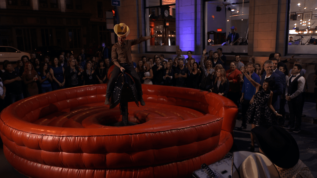 Chanter Je t’aime de Lara Fabian en mouton, se souvenir que le surnom d’Éric Lapointe est Ti-cuir, faire du karaoké sur un taureau mécanique et suivre une consigne: «Vous pouvez boire modérément, vous pouvez boire exagérément, de toute façon, il y a un chauffeur désigné: Gérard Depardieu.» Voilà, en gros, ce qui vous attend si vous êtes convié au party, Sur invitation seulement.