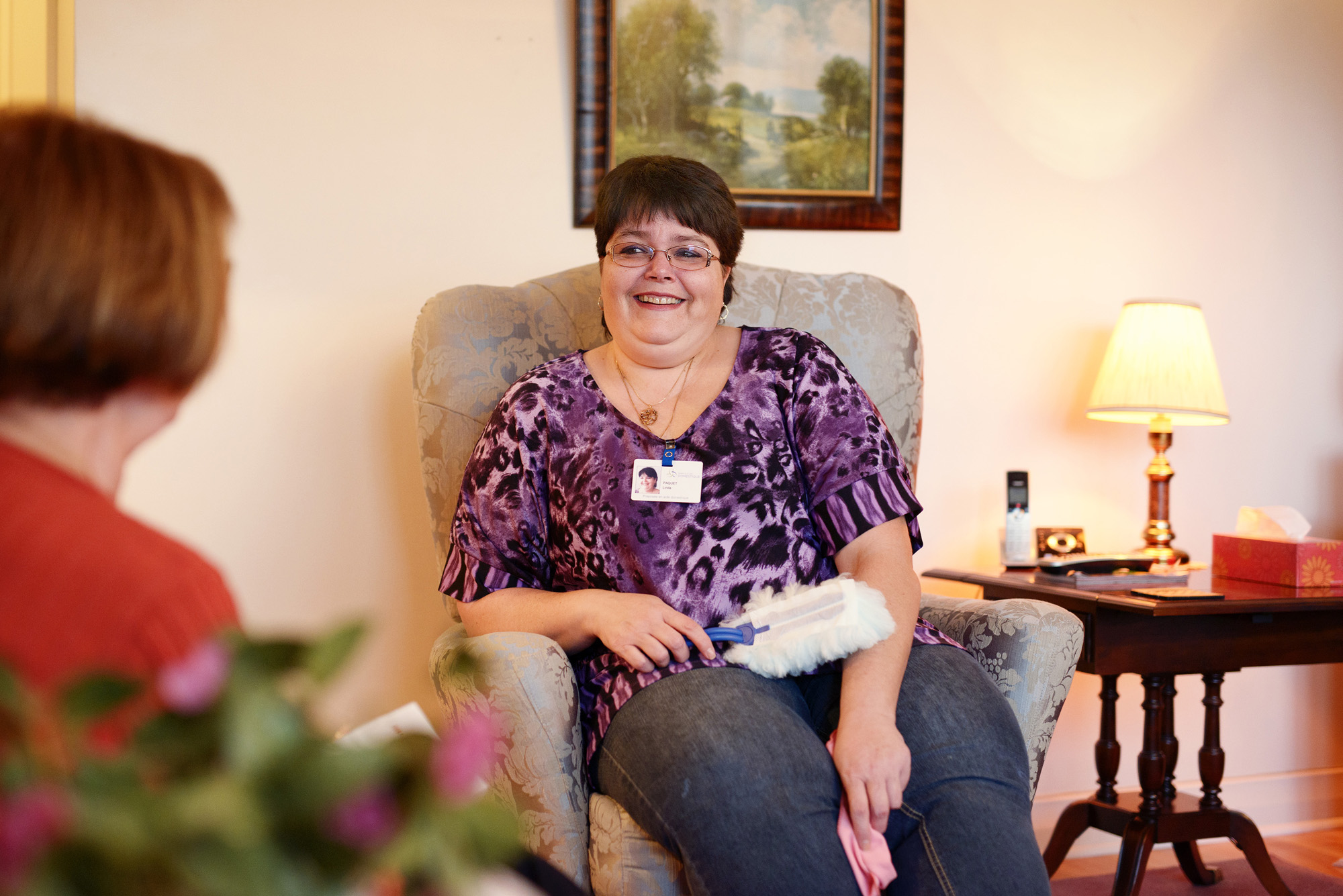 On lave les lits, les rideaux, le poêle, le frigidaire, on fait le lavage, le repassage, selon les besoins du client. Des fois, on a des blocs-repas: on les aide à préparer leurs repas pour la semaine. On est aussi là comme psychologues! On leur parle et on les écoute en faisant le ménage. Des fois, ils nous suivent dans la maison, pas pour nous surveiller, mais parce qu’ils n’ont personne d’autre à qui parler!