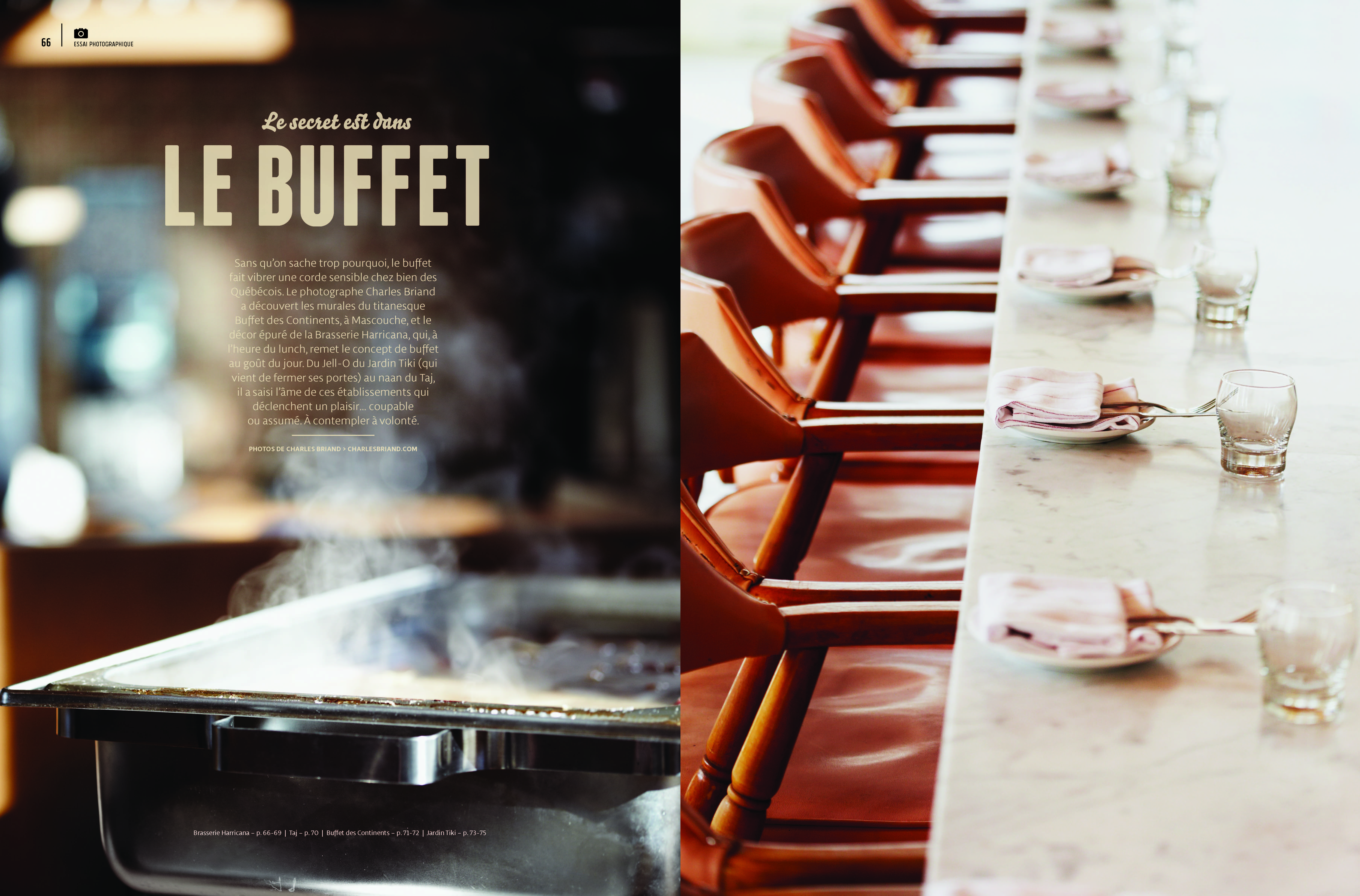 Une édition encore une fois haut de gamme portant sur les restaurants et dans laquelle on retrouvera des articles sur la critique, une bédé, des illustrations de «canisses» de sirop d’érable façon 21e siècle, des photos d’art, des portraits de personnages, comme cette dame qui sert du Saint-Hubert depuis des lustres ou ce plongeur du château Frontenac, en plus de flashs sympathiques: celui sur la genèse du «doggy bag», ce guide du resto parfait et ce reportage qui s’intéresse aux habitudes alimentaires des deux solitudes au Québec.