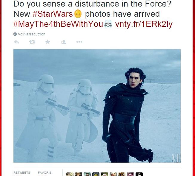 Le magazine américain Vanity Fair a dévoilé lundi la première photo du nouveau vil personnage de « Star Wars », au cours d’une « journée mondiale » de la célèbre saga intergalactique.