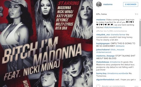 « La vidéo arrive bientôt! Nous essayons juste de la rendre parfaite pour vous tous. #bitchimmadonna ». C’est en ces termes que Madonna a dévoilé sur son compte Instagram le casting de choc de son prochain clip musical. Un premier teaser avait été dévoilé la semaine dernière, mais seules Katy Perry et Rita Ora étaient confirmées pour ce casting prestigieux.