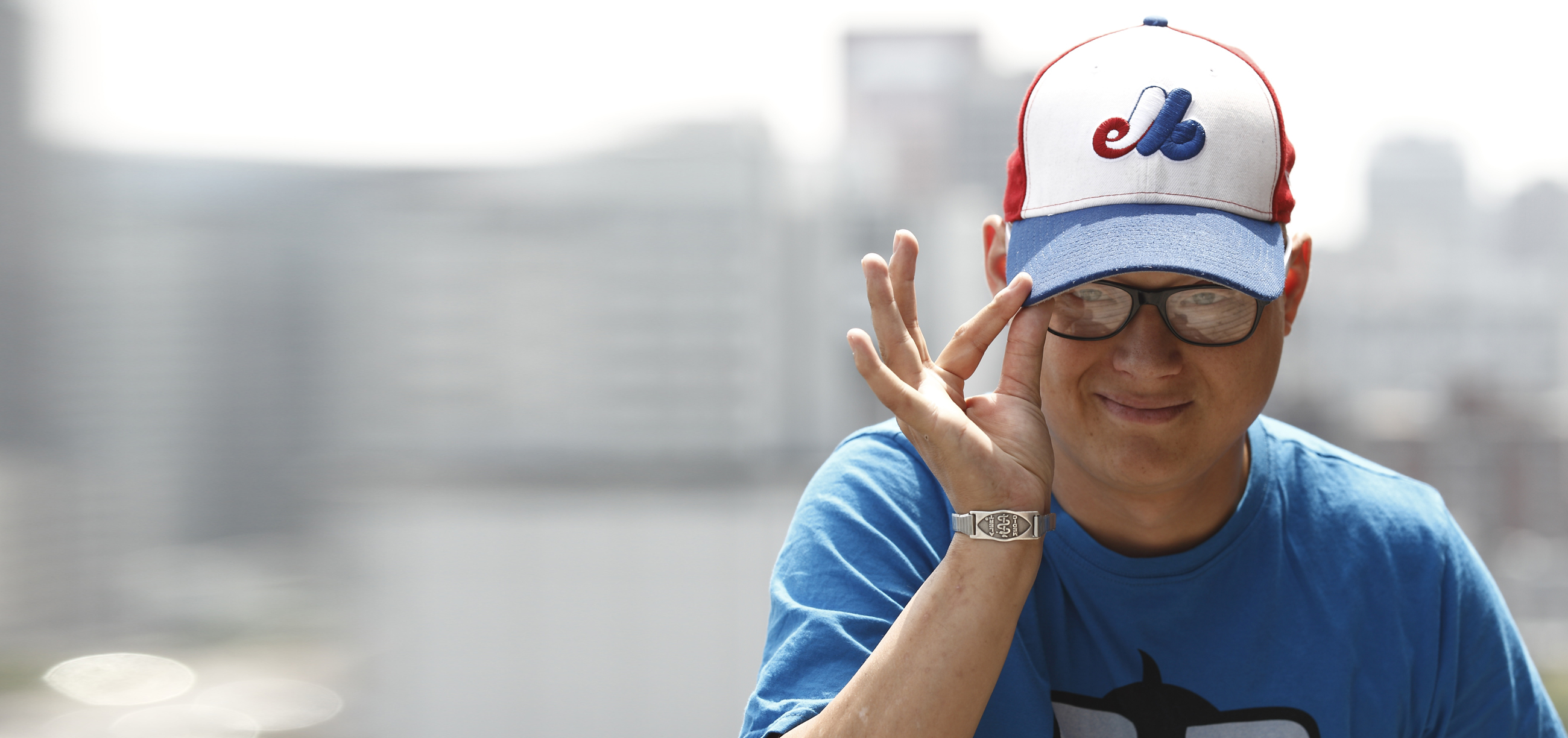 C’est peut-être parce qu’il porte ce jour-là une chouette casquette des Expos et un t-shirt de pingouin, mais au premier abord, Simon Delisle ne nous semble pas être un gars stressé. Et il s’adonne qu’en effet, stressé, Simon ne l’est guère. Jamais. La première imminente de son show à Zoofest? Certains diraient : «J’ai un peu, euh, le trac.» Lui s’exclame plutôt: «J’ai hâte!» Le triple refus qu’il a essuyé avant de finalement être accepté à l’École nationale de l’humour? Bien des gens auraient moyennement envie d’en parler. Lui? «Pas du tout! Au contraire! Ça fait partie de mon trajet! J’en suis très fier, même!» s’exclame-t-il avec entrain.