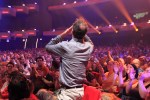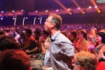 Accueilli par son ancien acolyte des Bleu poudre Raymond Beaudoin (Pierre Brassard), l’humoriste chouchou du Québec a d’abord vu les bureaux de Zéro musique («petites voix» et blague de clémentines incluses) recréés sous ses yeux dans une vidéo mettant en vedette Jean-Michel Anctil, Cathy Gauthier et Dominic & Martin, avant d’entendre sa classique chanson Snack Bar chez Raymond dans la bouche de nul autre que Vincent Vallières (dans la peau de Célestin Laperrière pour l’occasion). Une chanson que le public s’est spontanément mis à chanter en chœur. Tout comme il a répondu à l’appel quand l’animateur Stéphan Bureau l’a enjoint de compléter les phrases : «Un skidoo, on peut-tu laisser ça dans cour?» («Yiiiiish») ou «On a tous la bouche en sang» («et on rit»)…