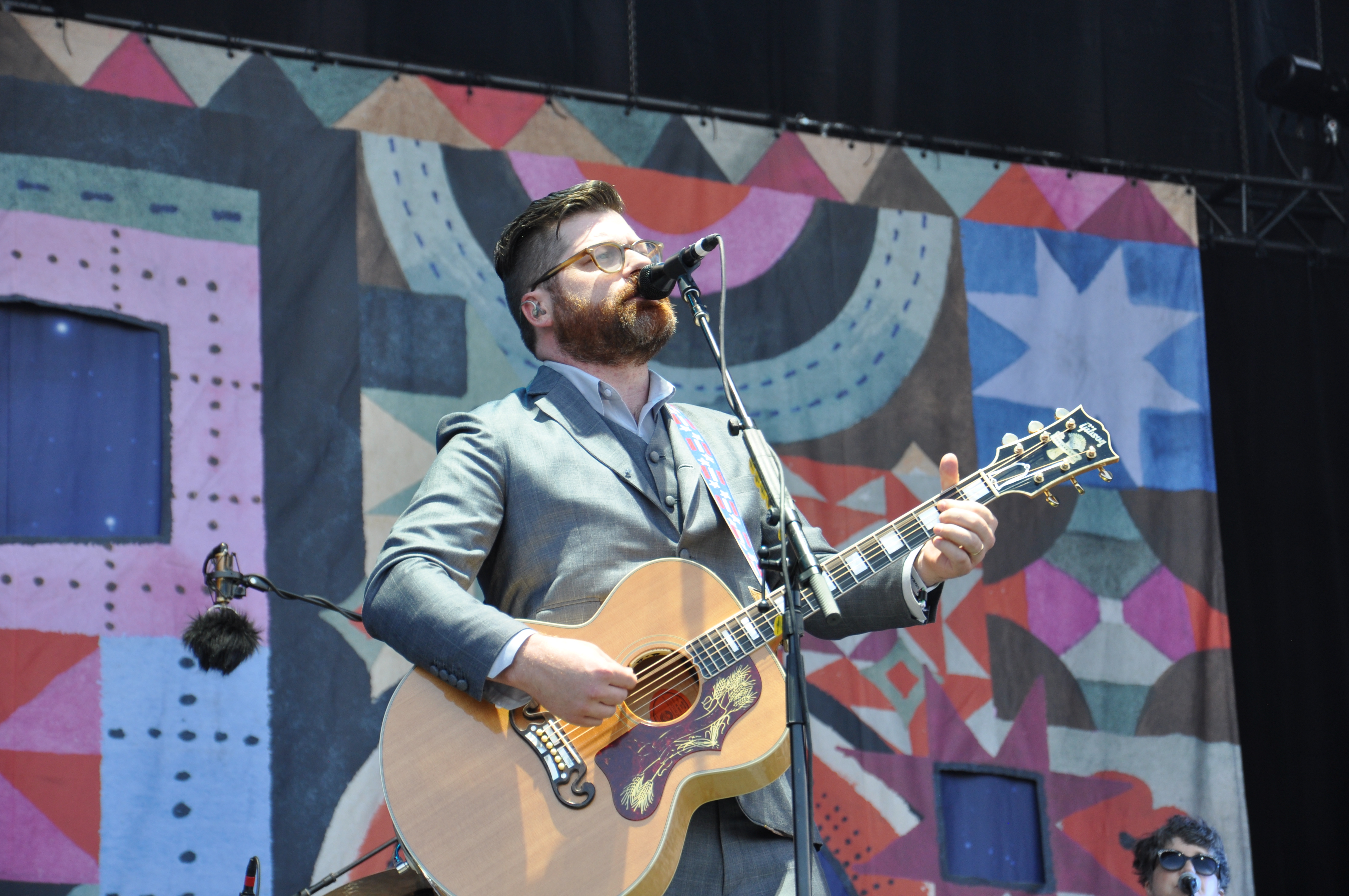 Vêtu d’un complet gris et soigneusement peigné, Colin Meloy, le chanteur et guitariste de The Decemberists est apparu sur scène à 17h35 tapante, ce vendredi, avec une bouteille de vin à la main et sirotant un verre de rouge. Il a débuté cette heure de musique folk avec pour seul acolyte sa guitare acoustique, avant d’être rejoint progressivement par ses six complices. Le groupe de Portland qui n’en est pas à sa première visite au festival (on les avait vu en 2009) a entonné avec simplicité et naturel les succès de ses 7 albums que la foule a repris en chœur. Généreux et bourré de mimiques, Meloy a réussi en peu de temps à tisser une proximité avec le public. Le genre de show qu’on aime écouter pour nous mettre dans l’ambiance, un peu comme si Colin Meloy et sa bande nous avait donné un concert privé au fond de notre cour.