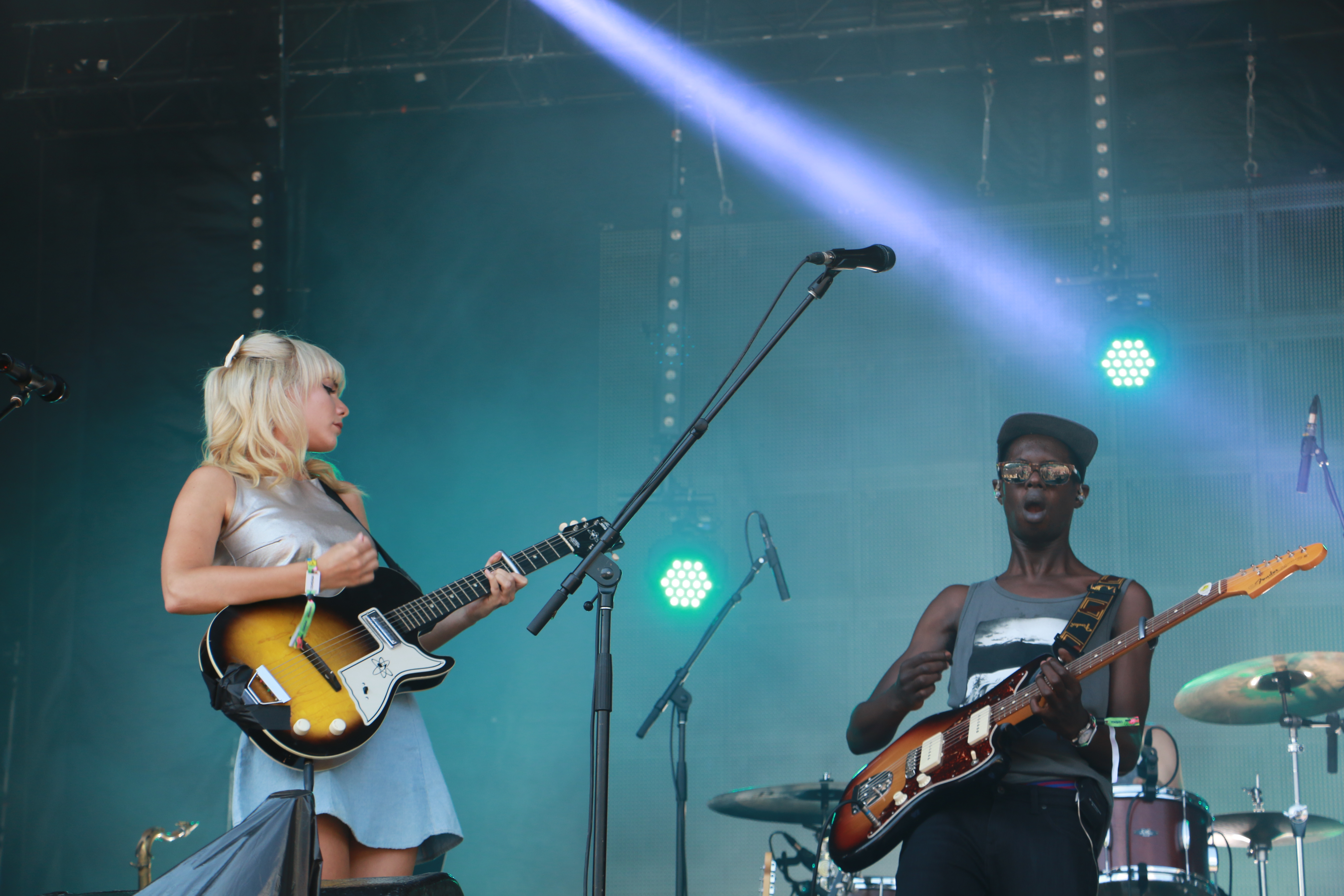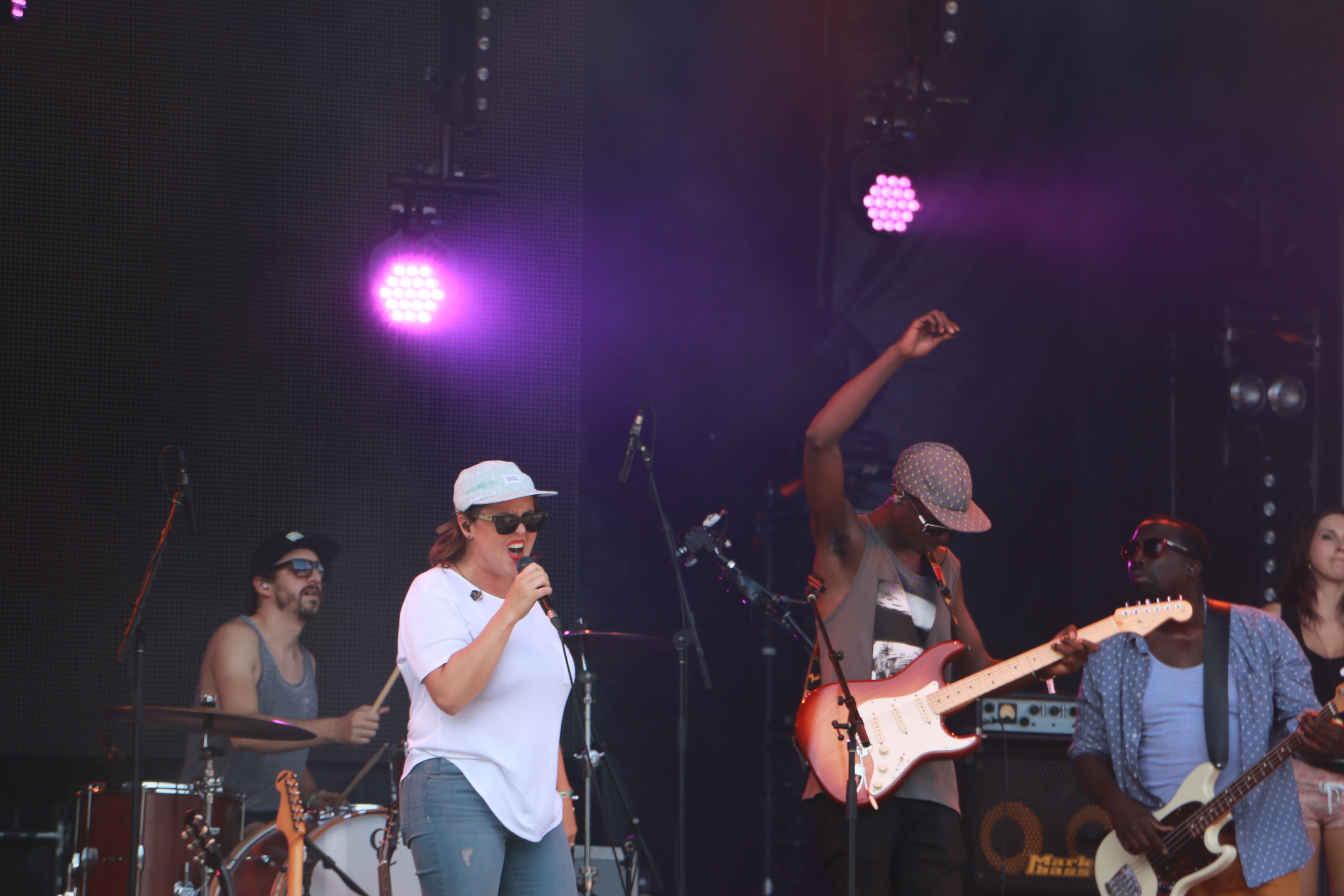 En tenue de festivalier – casquette, camisole et lunettes de soleil vissées sur le nez –, Karim Ouellet a entamé sa performance avec deux chansons de son album Fox, les entraînantes Cyclone et Fox. Puis, s’adressant à la foule pour une première fois, il a lancé: «Osheaga bonjour! Philippe Fehmiu, est-ce que t’es pas loin? Ok, c’est beau!» avant d’accueillir la première invitée de cette performance conçue spécialement pour Osheaga, Kandle Osborne, qui a amené un peu de folk au spectacle.