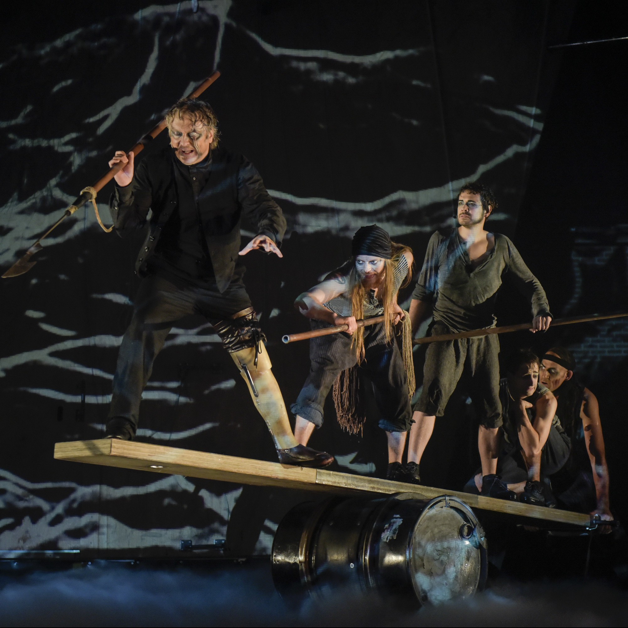 Avec Dominic Champagne (L’Odyssée) à la mise en scène, on s’attendait à ce que Moby Dick, qui ouvre la présente saison du TNM, offre quelque chose de spectaculaire visuellement. Et on n’a pas été déçue de ce côté. Si quelques longueurs et faiblesses ponctuent le texte, la reconstitution sur scène du Péquod, bateau où s’embarquent Achab (solide Normand D’Amour) et son équipage à la poursuite de la baleine blanche Moby Dick, est grandiose, la mise en scène, énergique, et l’ensemble est porté par une excellente trame sonore pleine de tension. (Jessica Émond-Ferrat)