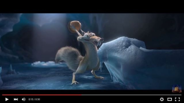 Toujours à la recherche de sa noisette, il ne manque pas de bondir et de multiplier les grimaces pour la conserver. Mais, cette fois-ci, le fruit sec se fixe dans les manettes d’une soucoupe volante qu’il enclenche maladroitement.