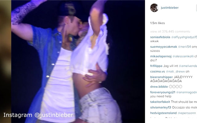 Le chanteur canadien de 21 ans le prouve sur Instagram en postant une photo de lui un bras passe autour de la taille de sa belle en plein baiser du nouvel an.