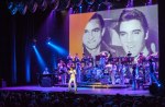 Pendant certaines chansons, des images d’archives d’Elvis Presley, sa femme Priscilla et leur fille Lisa-Marie sont présentées, titillant la fibre nostalgique des fans dans la foule.