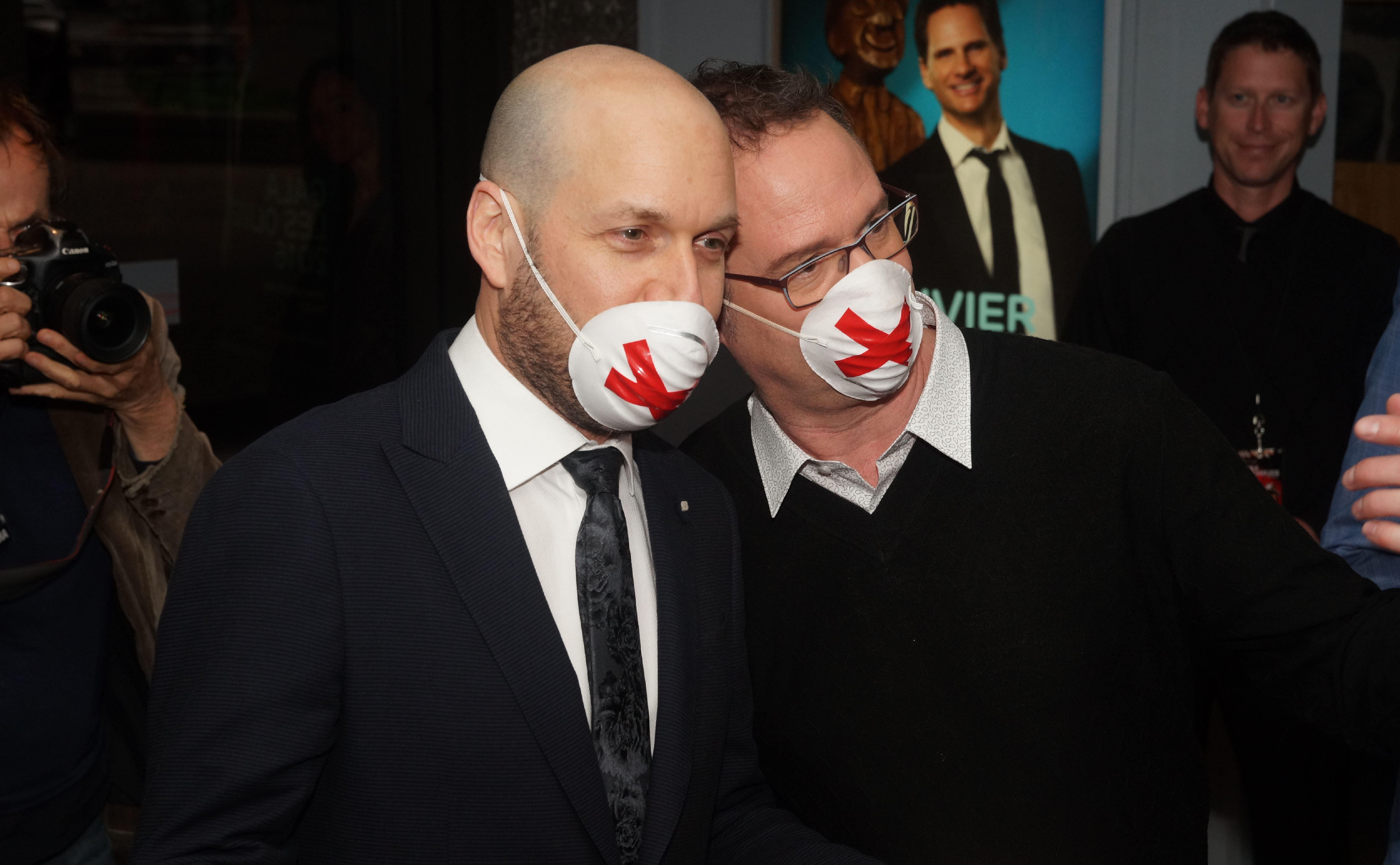 Plusieurs humoristes se sont ralliés derrière Mike Ward et Guy Nantel dimanche soir au Gala Les Olivier en arrivant tous ensemble, un masque sur la bouche décoré d’un X rouge. Les humoristes n’ont accordé aucune entrevue sur le tapis rouge.