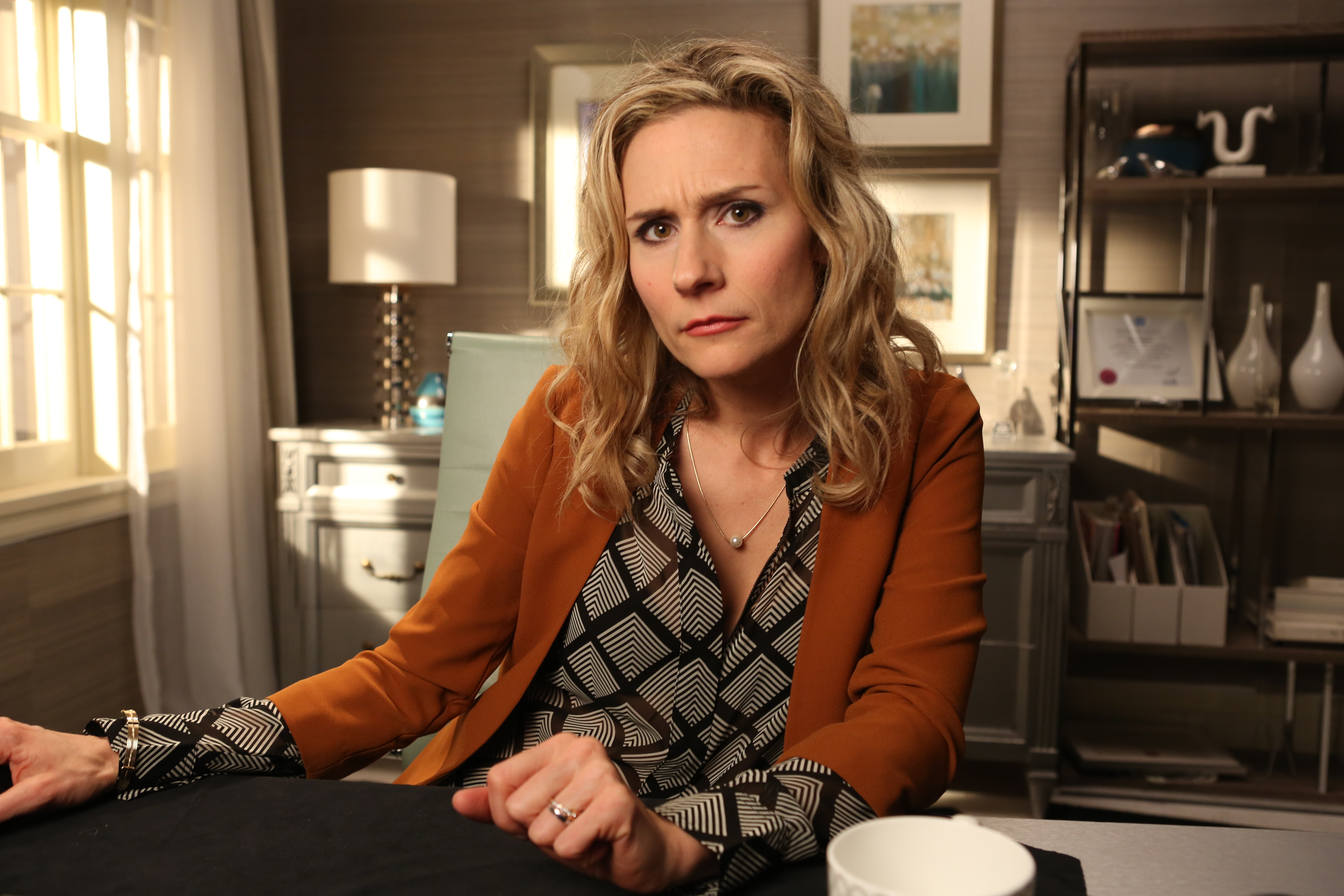 Edith Cochrane se glisse dans la peau de la psychothérapeute égocentrique traitant ses patients par Skype dans Web Thérapie, adaptation québécoise de la série américaine Web Therapy mettant en vedette Lisa Kudrow.