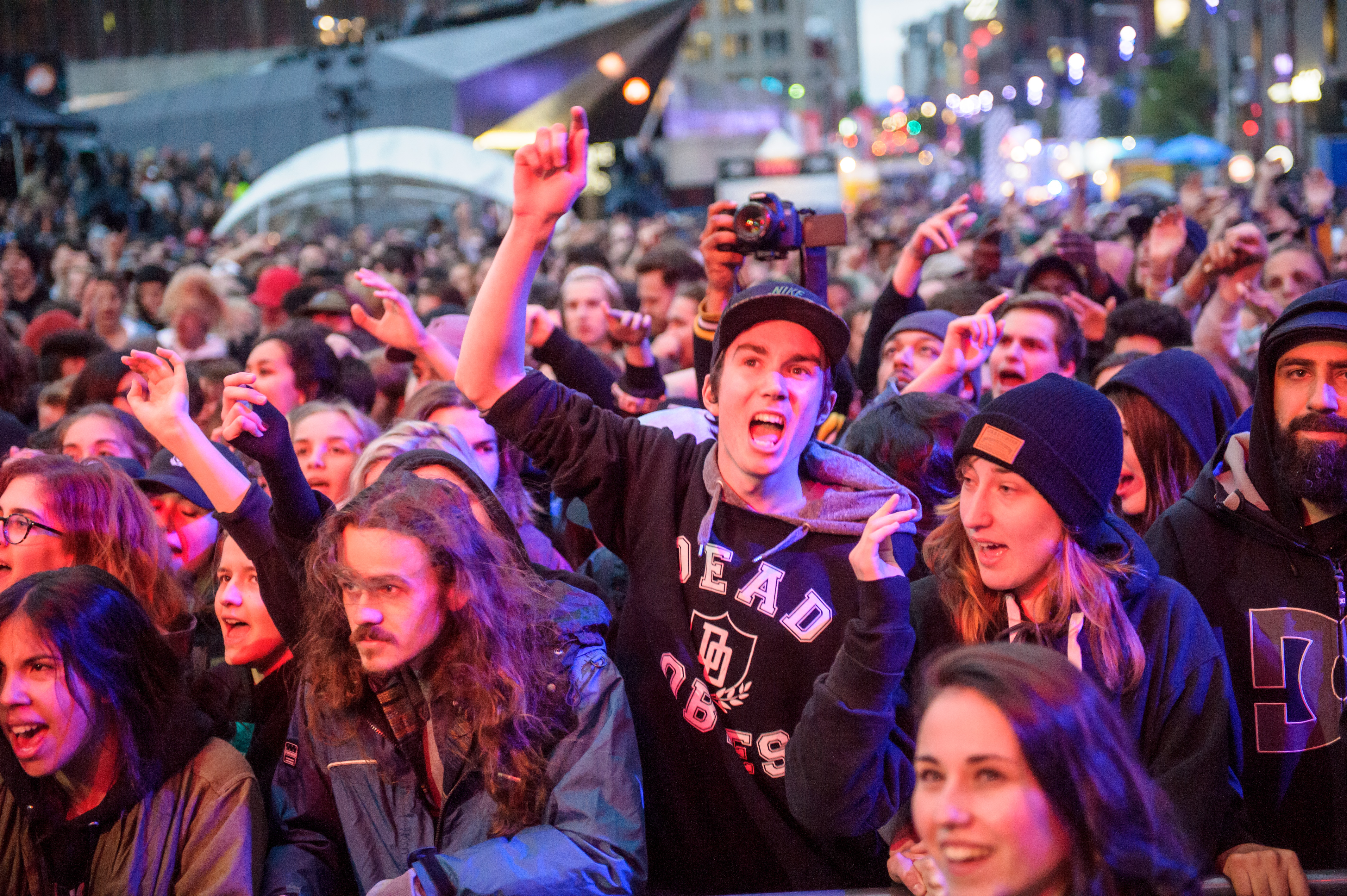 La température automnale n’a pas empêché le concert d’ouverture des 28e FrancoFolies de Montréal de donner le coup d’envoi à la saison chaude. Coup d’œil en quatre temps sur une soirée d’ouverture toute en hip-hop, qui a enflammé la foule nombreuse réunie sur la Place des Festivals.